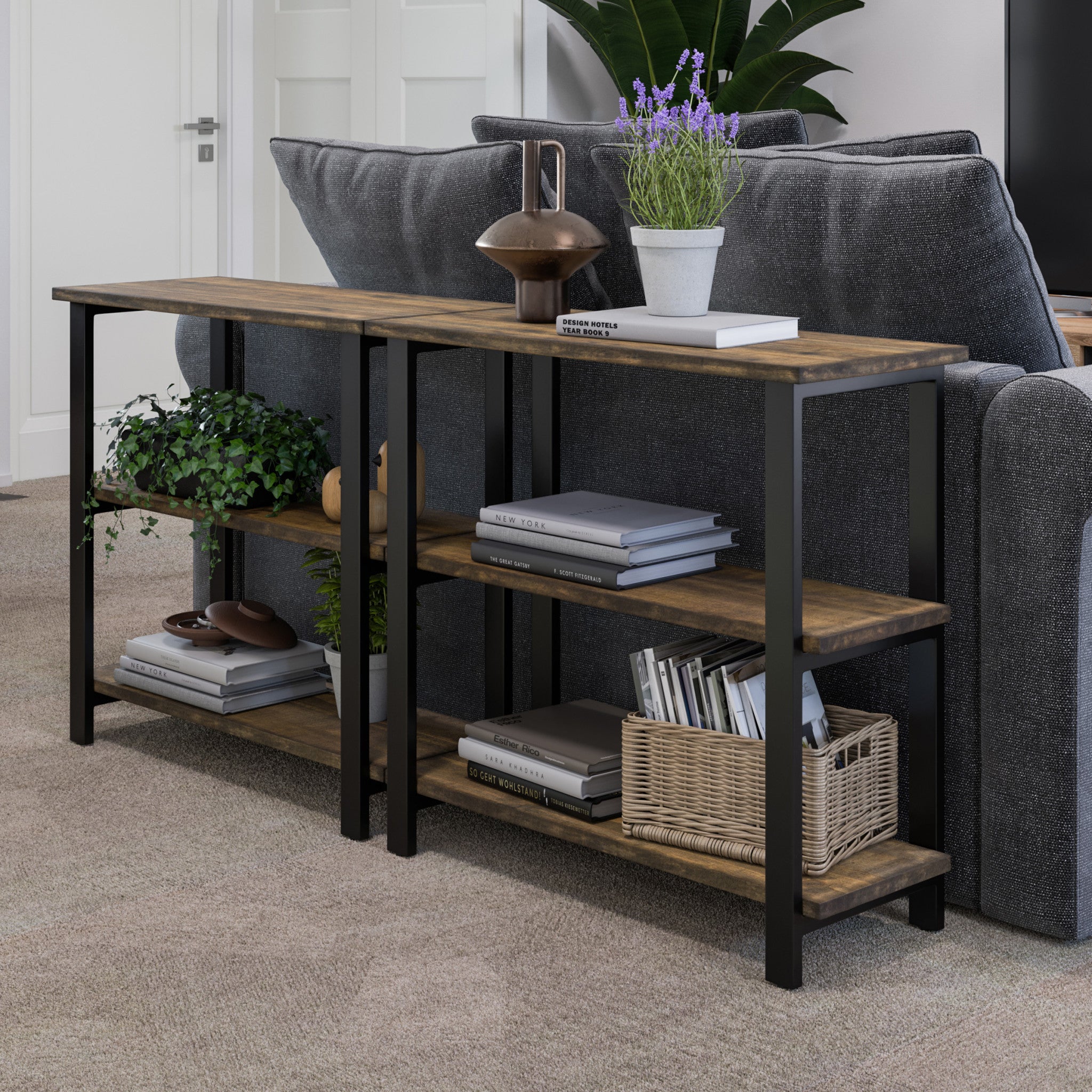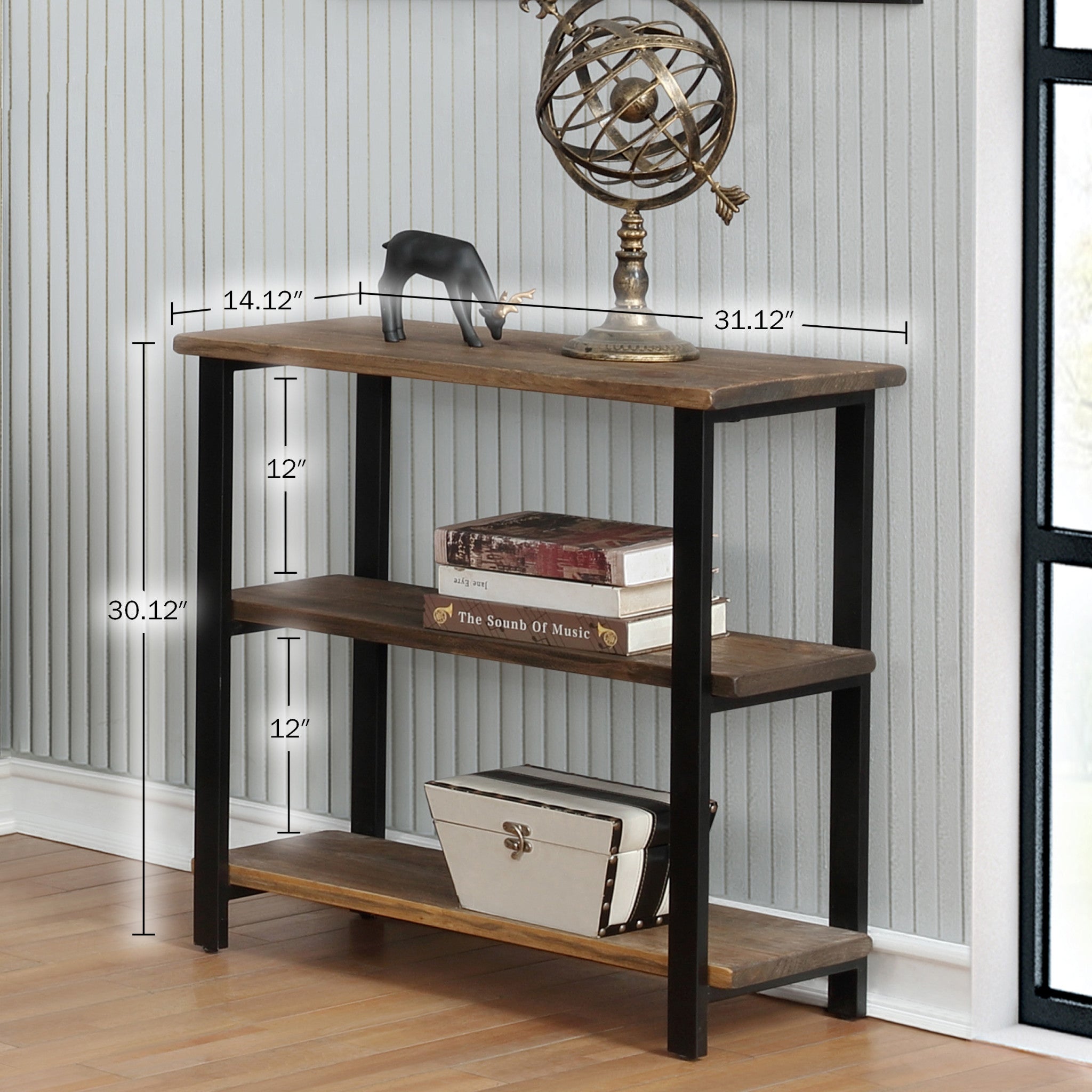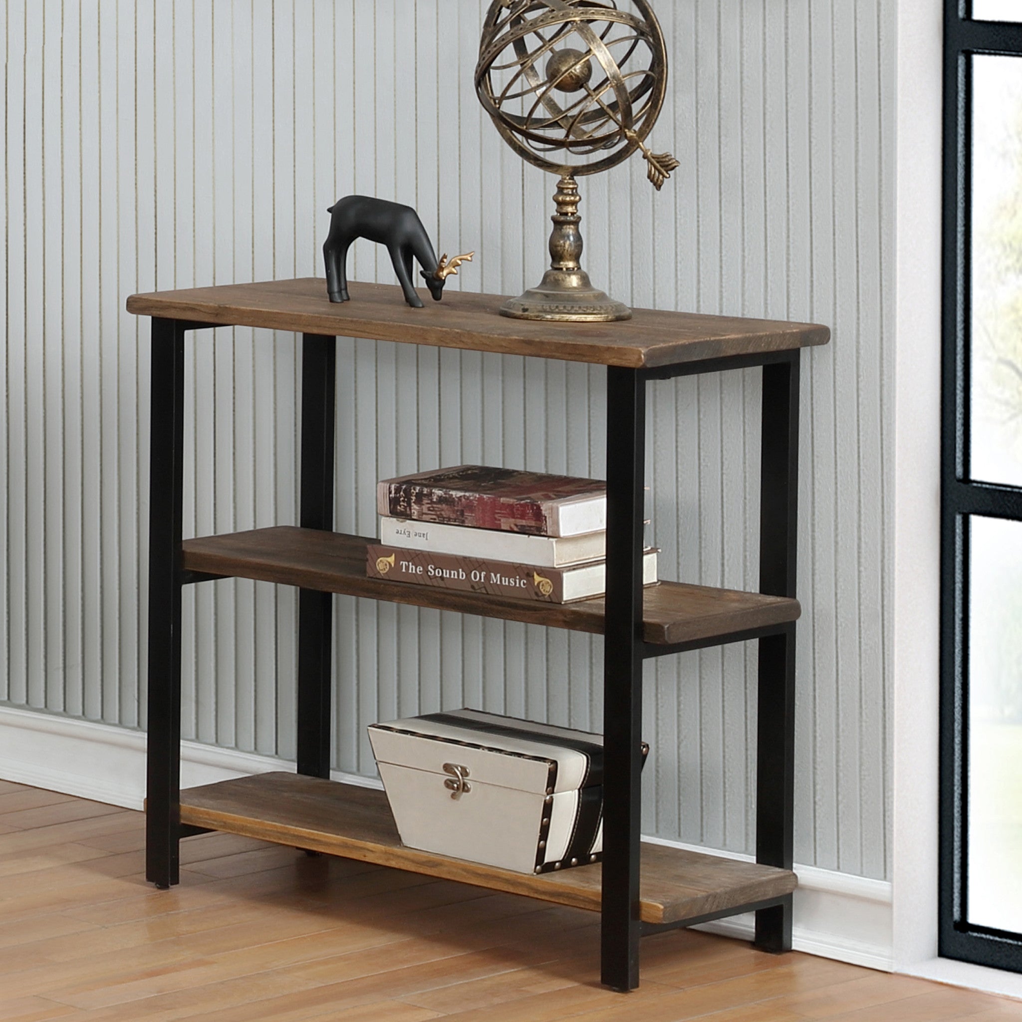 - 3-TIER BOOKCASE – Bring character and warmth into your home with the Pomona 31" Tall 3-Tier Bookcase. Featuring a reclaimed wood look with natural variations in grain, knots, and texture, paired with a sleek black metal frame, this under-window bookcase blends rustic farmhouse and industrial style for a timeless accent in any space.