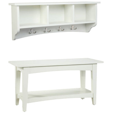 Shaker Cottage Bench and Storage Coat Hook set can be used in the mud room, entryway or anywhere you need a bit more organization. Sit on the bench to put on or remove your shoes; store your keys, gloves and more in the storage hook's cubbies. Eight hooks for all your coats and accessories. The coat hook is fully assembled and includes a French cleat for easy hanging; the bench is sturdy and easy to assemble.