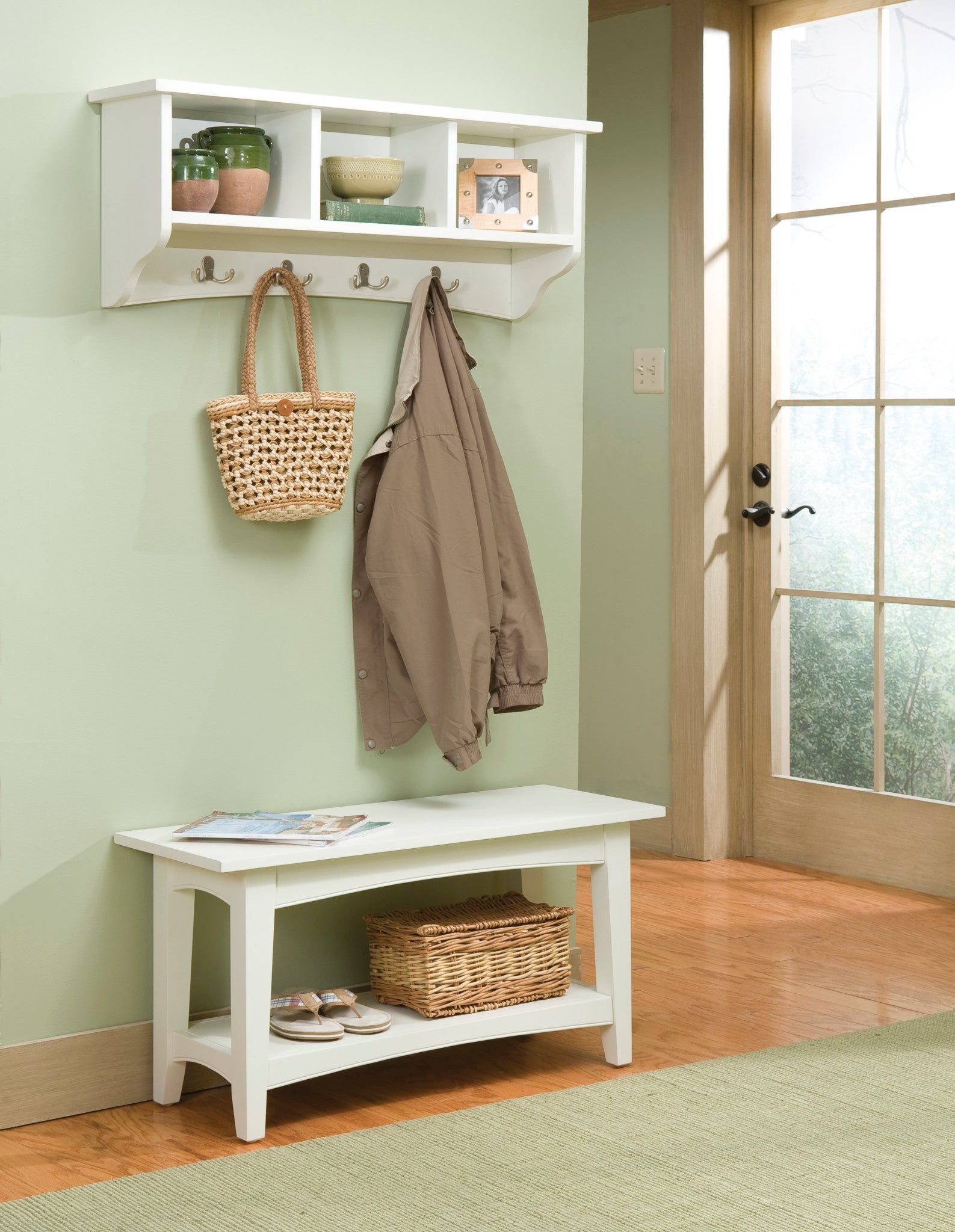 - [DESIGN] Elevate your entryway with the Shaker Cottage Bench; features an ivory finish and shaker style, perfect for coats and accessories organization