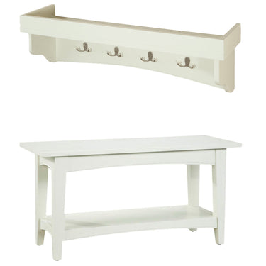 Shaker Cottage Bench and Tray Shelf Wall-Hanging Coat Hook set can be used anywhere you need a bit more organization. A tray shelf allows you to display favorite items and the 8 coat hooks allow you to keep everything neat. Sit on the bench to put on or remove your shoes. The coat hook is fully assembled and includes a French cleat for easy hanging; the bench is sturdy and easy to assemble.