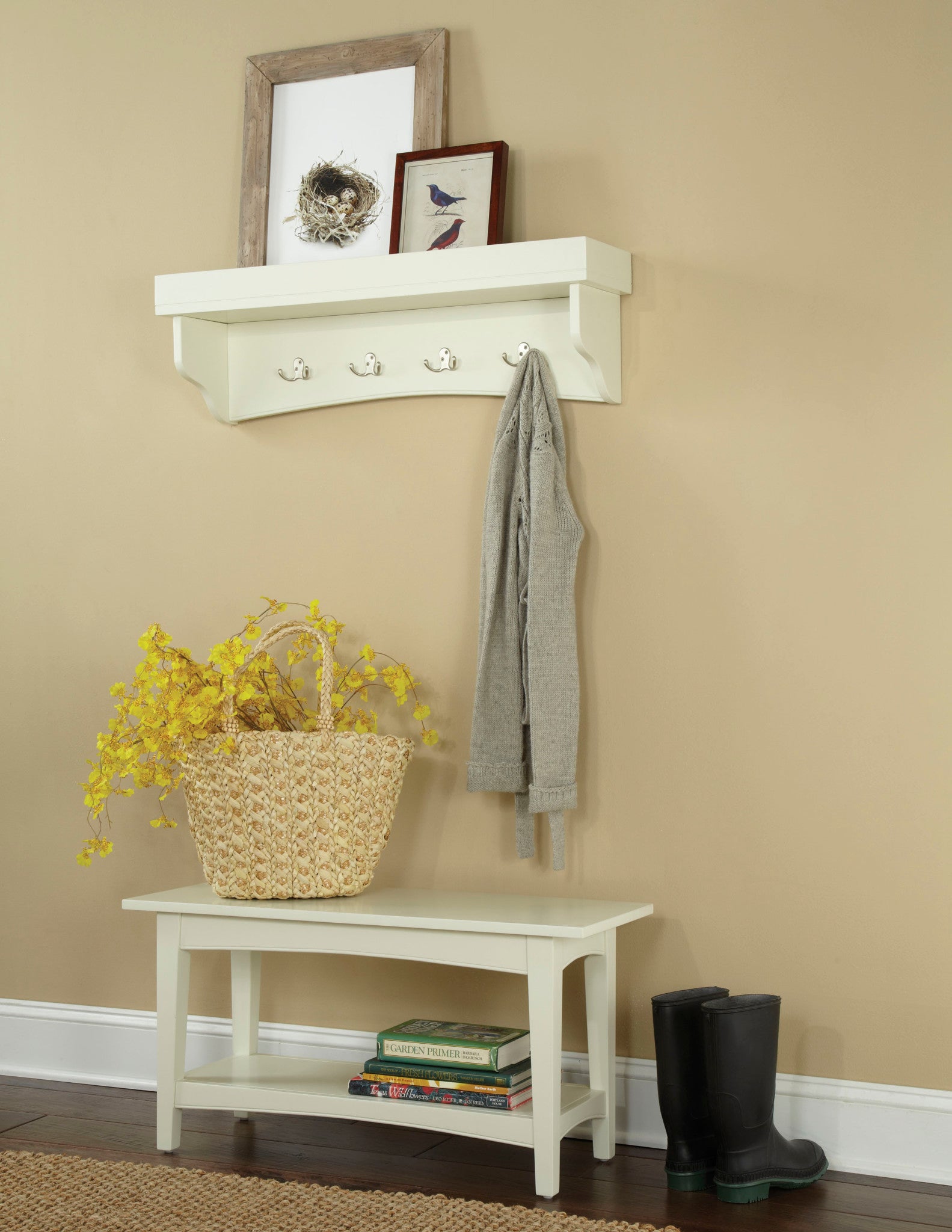 • [EFFICIENT DESIGN] The Alaterre Shaker Cottage Wall-Mounted Coat Hook and Bench Set features a tray shelf and eight hooks, ensuring a tidy, welcoming space in your hallway or mudroom