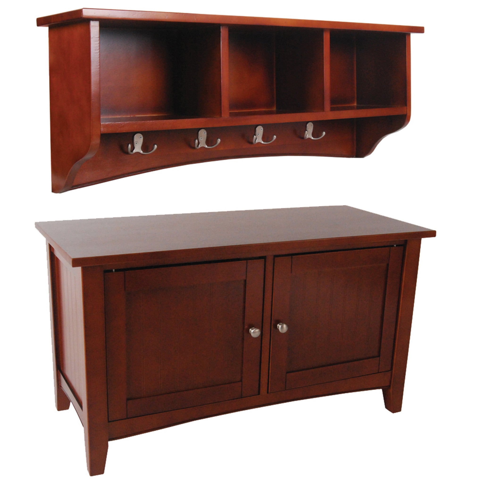 Shaker Cottage Storage Coat Hook with Cabinet Bench Set, Cherry