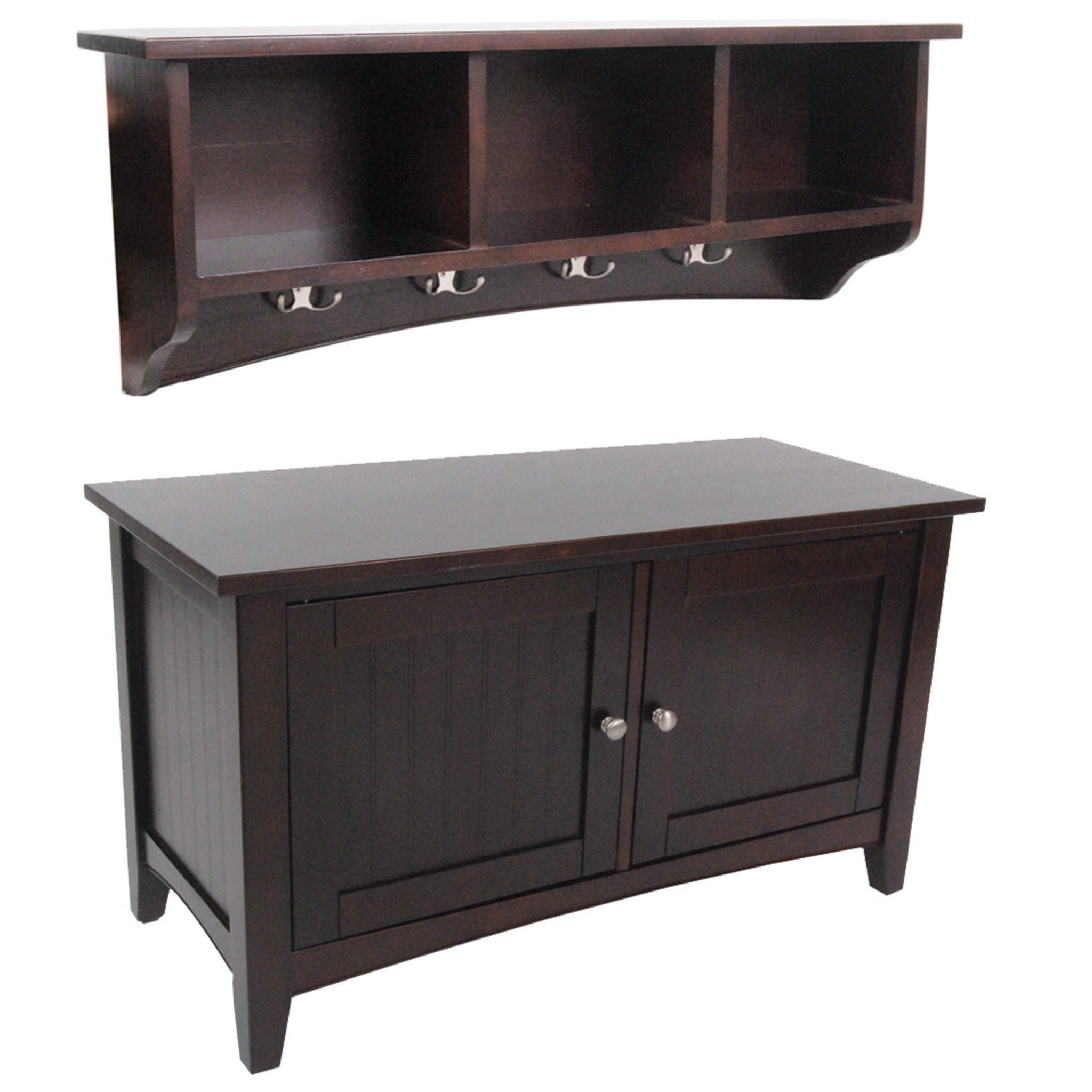 Shaker Cottage Storage Coat Hook with Cabinet Bench Set, Espresso