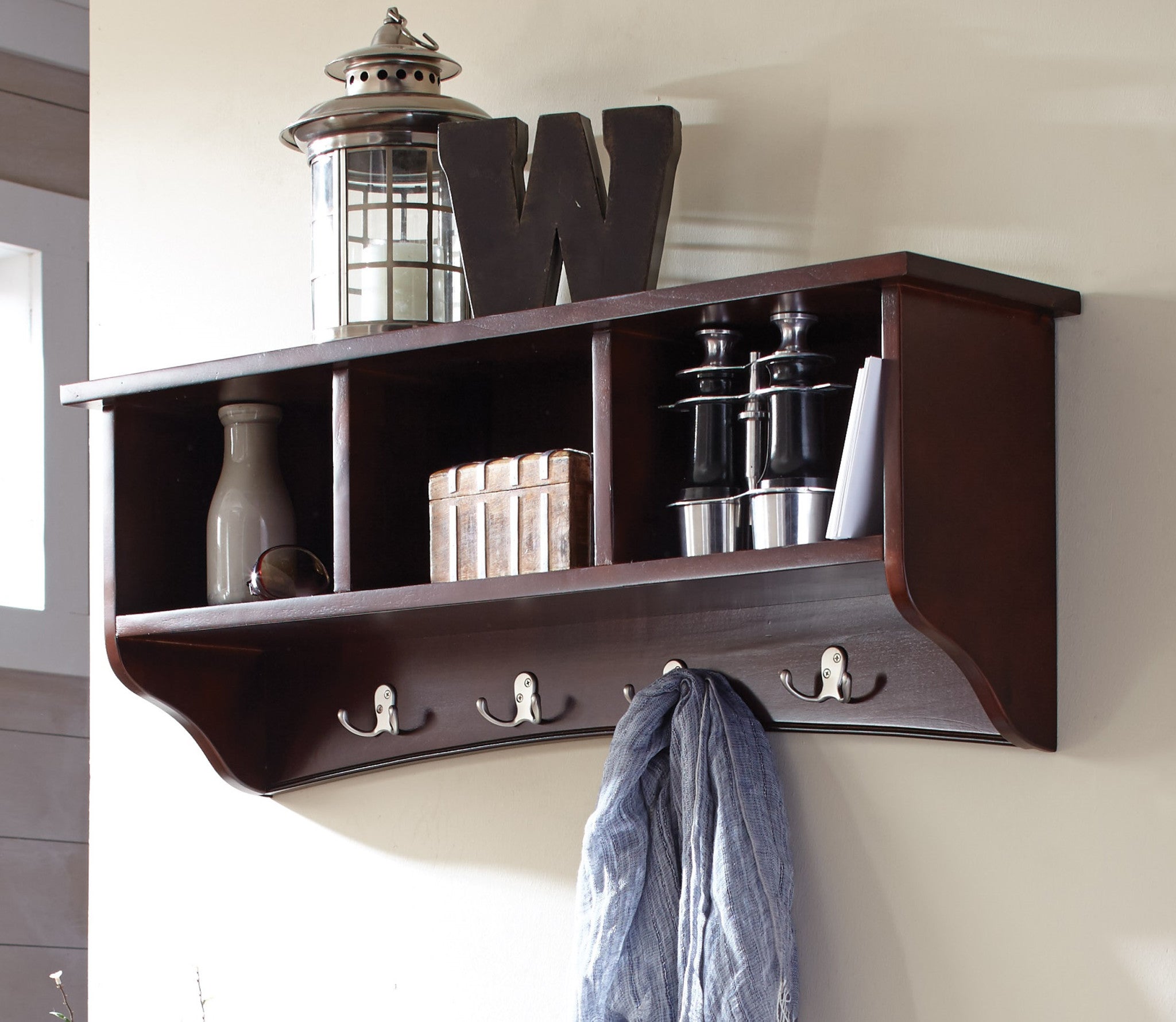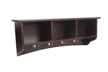 • PRODUCT DETAILS – Materials: Solid Birch Wood with Veneer, and MDF. Overall Dimensions: (L) 36" x (W) 9" x (H) 14", Each cubby: (L) 10.25" x (W) 9" x (H) 7.25", Hook's space: (W) 6.25". Includes 4 Coat Hooks. Weight Capacity: 75lbs. Color: Espresso.