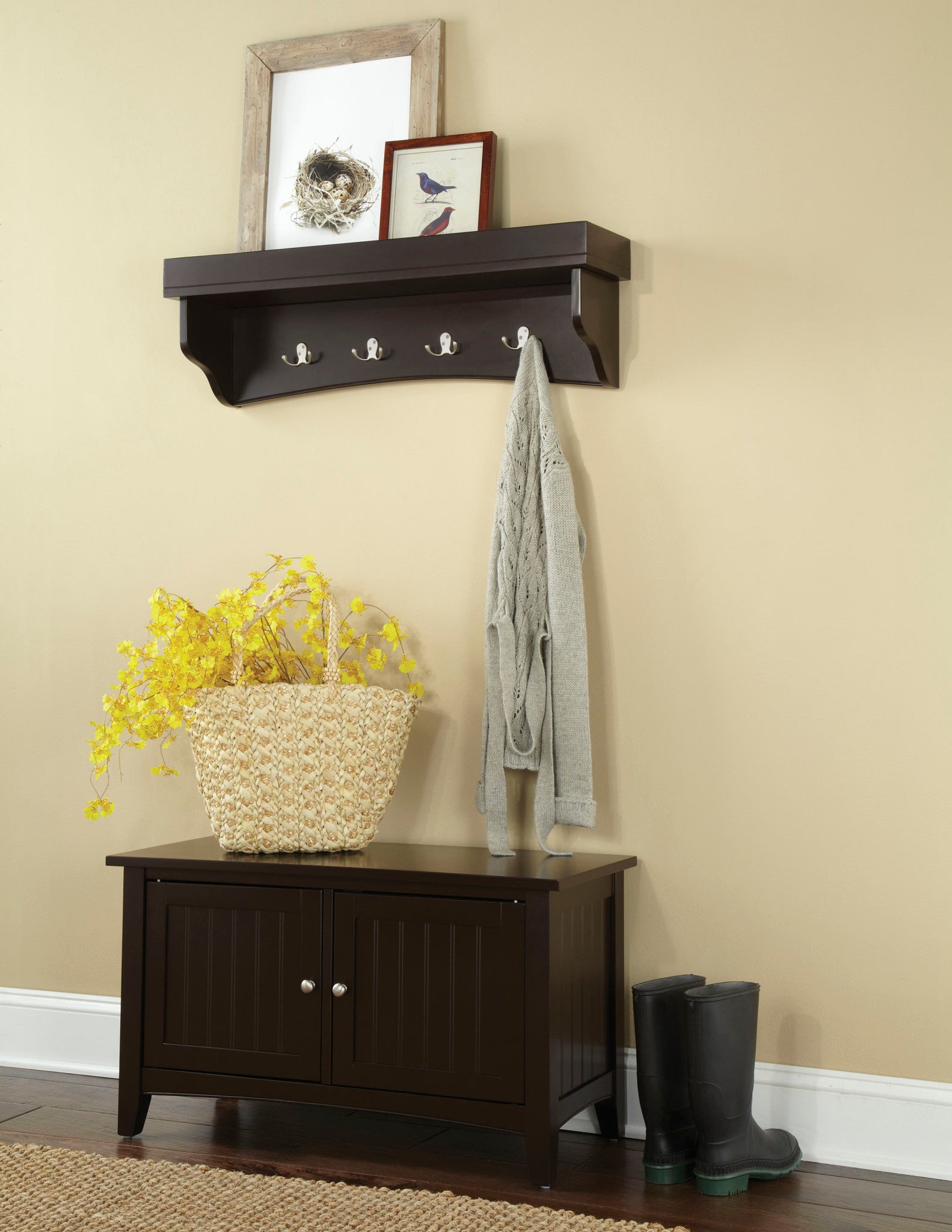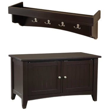 Shaker Cottage Tray Shelf Coat Hook with Cabinet Bench, Chocolate