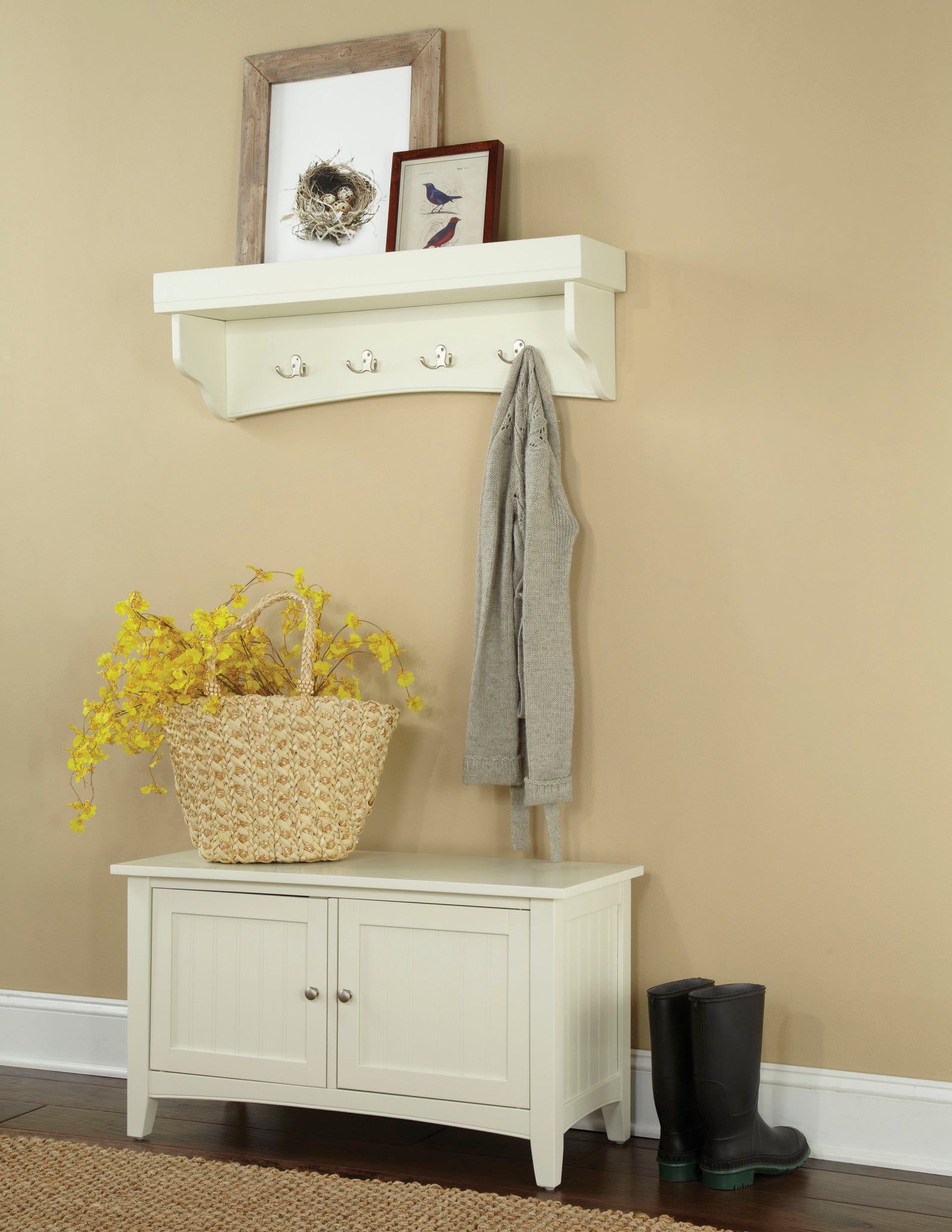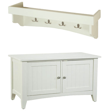 Shaker Cottage Tray Shelf Coat Hook with Cabinet Bench, Ivory