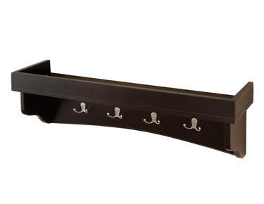 Shaker Cottage Coat Hooks with Tray Shelf, Chocolate