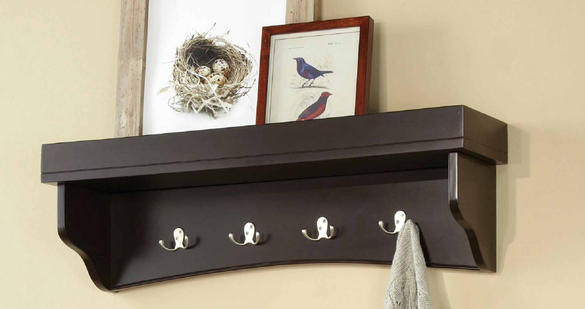 The Shaker Cottage collection will compliment any décor. Transitional, cottage styling in multiple finish choices will blend into many spaces. Each piece offers both style and storage to help update a room. Coat Hook with Tray Shelf stylishly keeps your coats and other items organized. A tray shelf allows you to display favorite items and the 8 coat hooks allow you to keep everything neat. Perfect for your entryway, mudroom or laundry room.