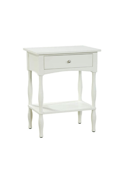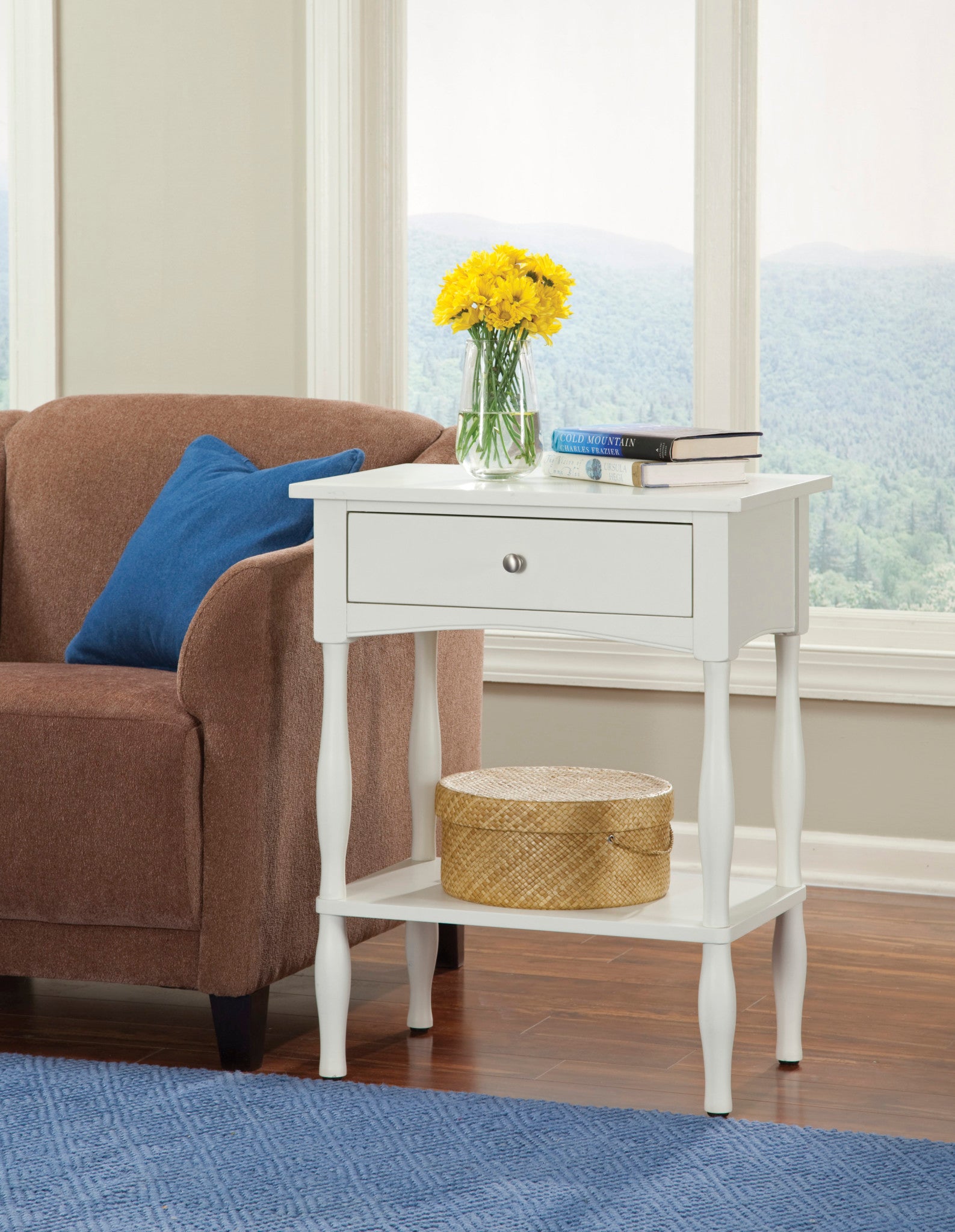 - [DESIGN AND FUNCTIONALITY] Shaker Cottage End Table features turned legs, ivory finish, drawer, and shelf. Adds cottage charm and storage to any living space