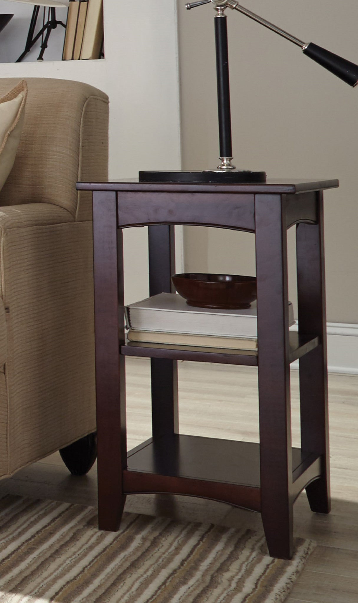 The Shaker Cottage collection will compliment any décor. Transitional, cottage styling in multiple finish choices will blend into many spaces. Each piece offers both style and storage to help update a room. Practical Cottage Style end table with two shelves to keep your room neat and organized. Made from wood with an Espresso finish. Pair with other accent tables from this collection for a finished space.