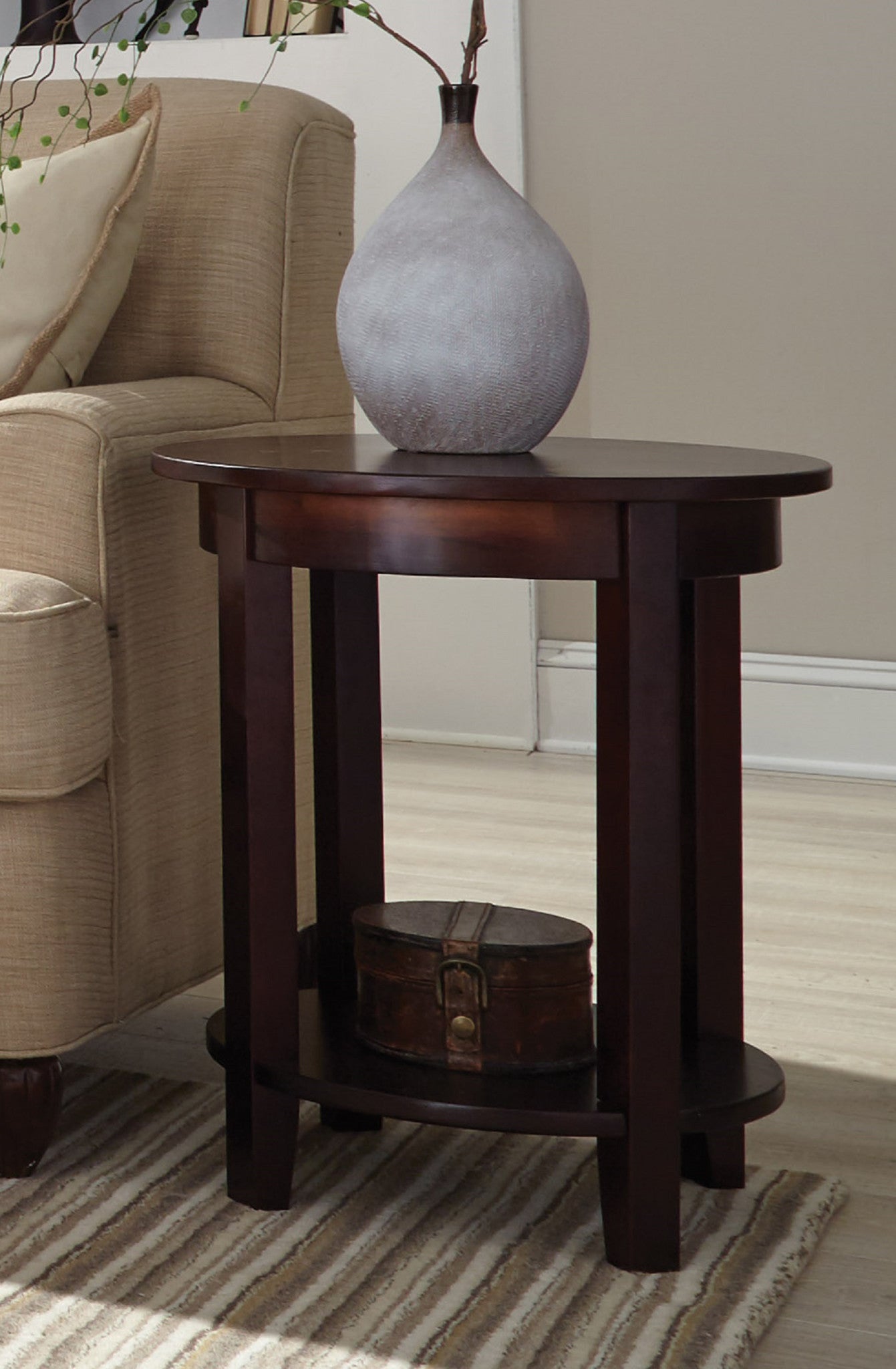 The Shaker Cottage collection will compliment any décor. Transitional, cottage styling in multiple finish choices will blend into many spaces. Each piece offers both style and storage to help update a room. Shaker Cottage 19"Diameter round accent table is versatile for any space in your home. Attractive design with functional shelf adds a stylish element to your room's decor. Made from wood with a cherry finish.