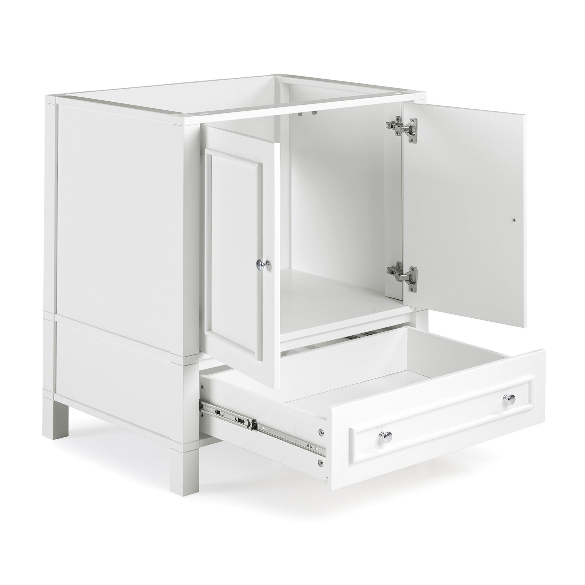 Update your bath with the fresh, clean look of the Williamsburg 30 Inch Bathroom Sink Vanity 2-Piece Set by Alaterre Furniture. Constructed from solid pine wood and composite wood, this small bathroom vanity features soft-close doors, a large bottom drawer, nickel hardware, and adjustable height levelers for stable installation (the top and sink are not included). The Williamsburg Collection from Alaterre Furniture features premium quality solid wood bathroom vanities and coordinating pieces that can be self-assembled using the included manual or by referring to our helpful assembly videos.