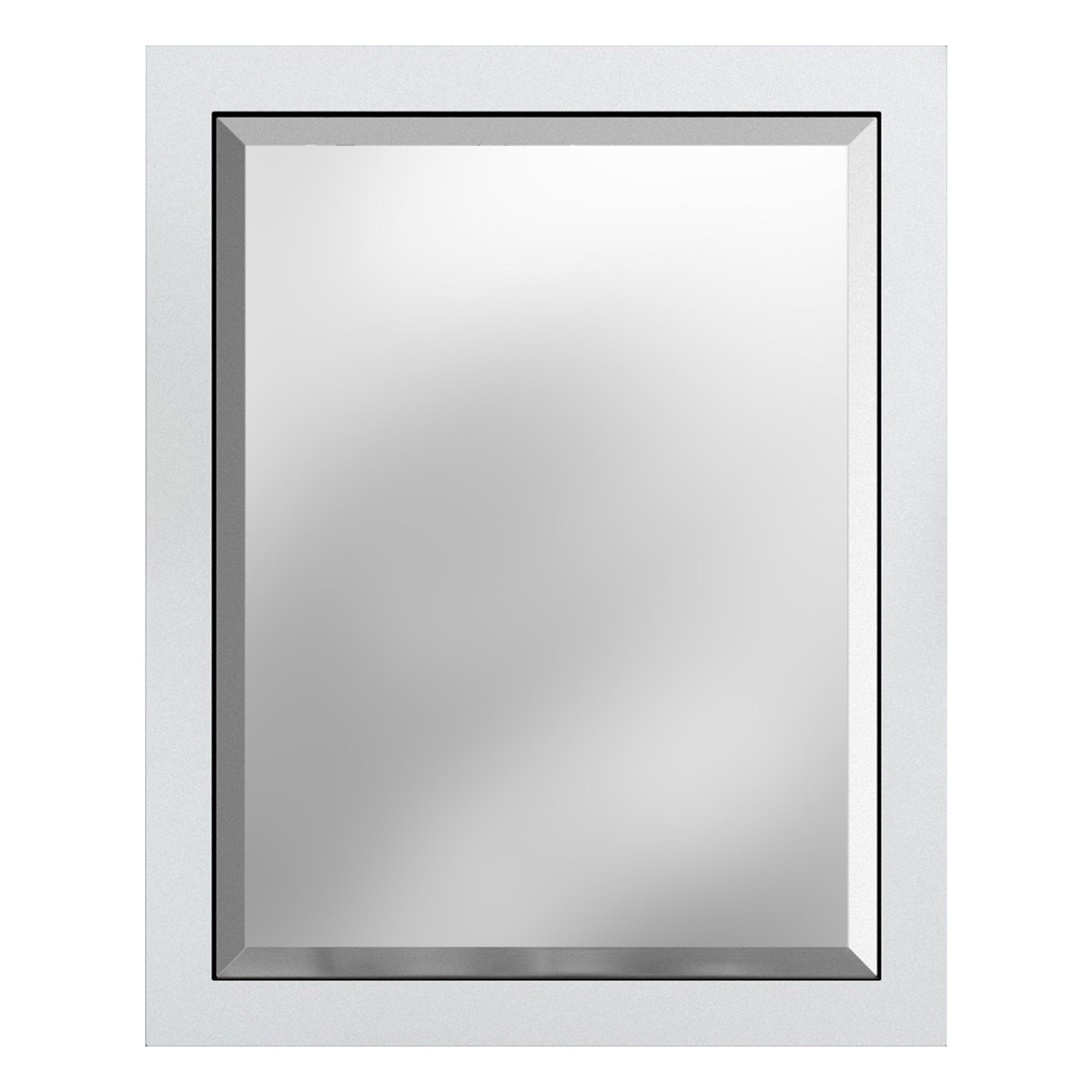 - The 24-inch-wide rectangular bathroom mirror features beveled glass edges and a real wood frame with a white finish for a sleek, stylish look
