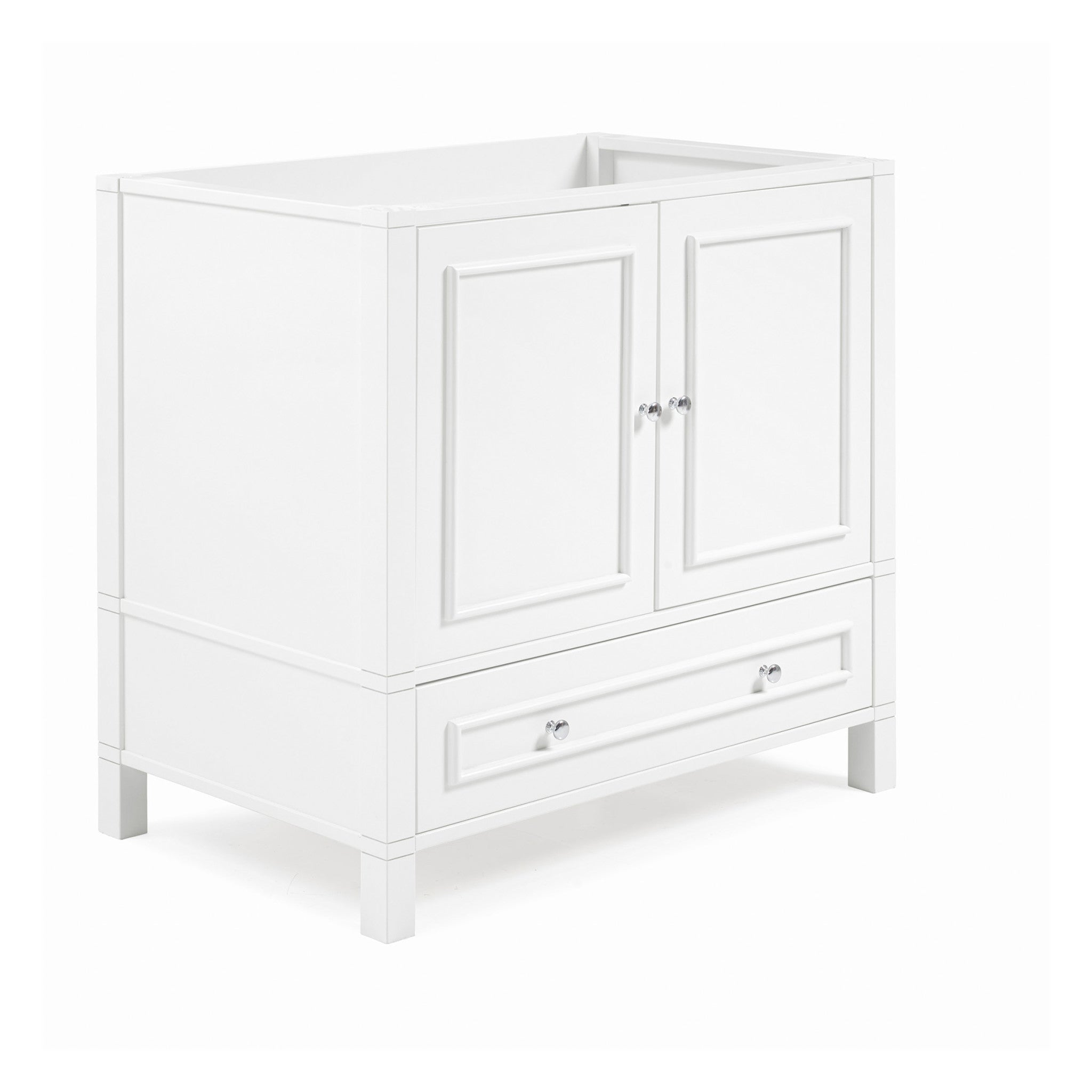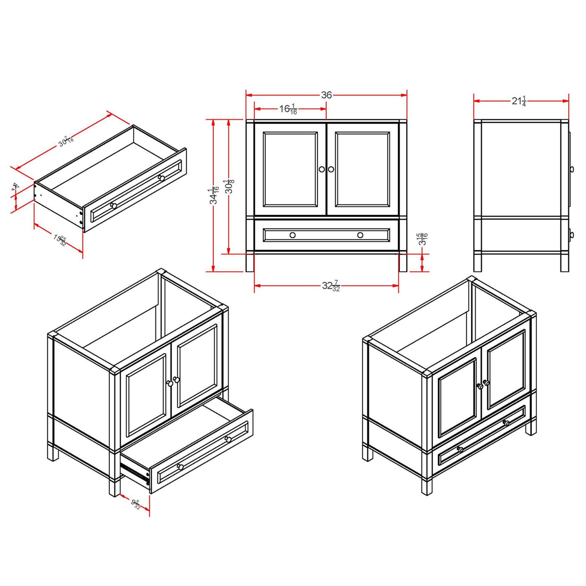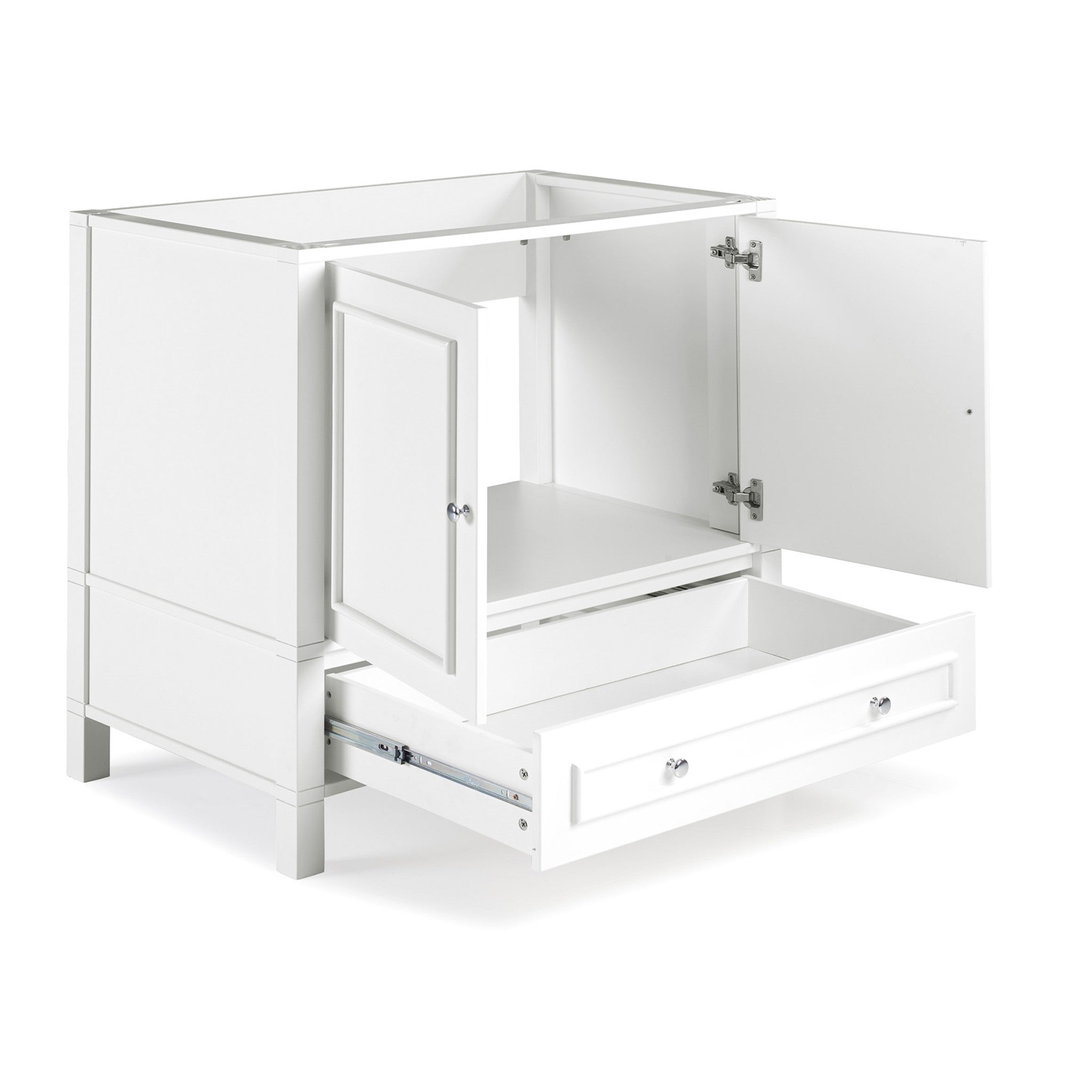 Update your bath with the fresh, clean look of the Williamsburg 36 Inch Bathroom Sink Vanity 2-Piece Set by Alaterre Furniture. Constructed from solid pine wood and composite wood, this sink vanity for small bathroom features soft-close doors, a large bottom drawer, nickel hardware, and adjustable height levelers for stable installation (the top and sink are not included). The Williamsburg Collection from Alaterre Furniture features premium quality solid wood bathroom vanities and coordinating pieces that can be self-assembled using the included manual or by referring to our helpful assembly videos.