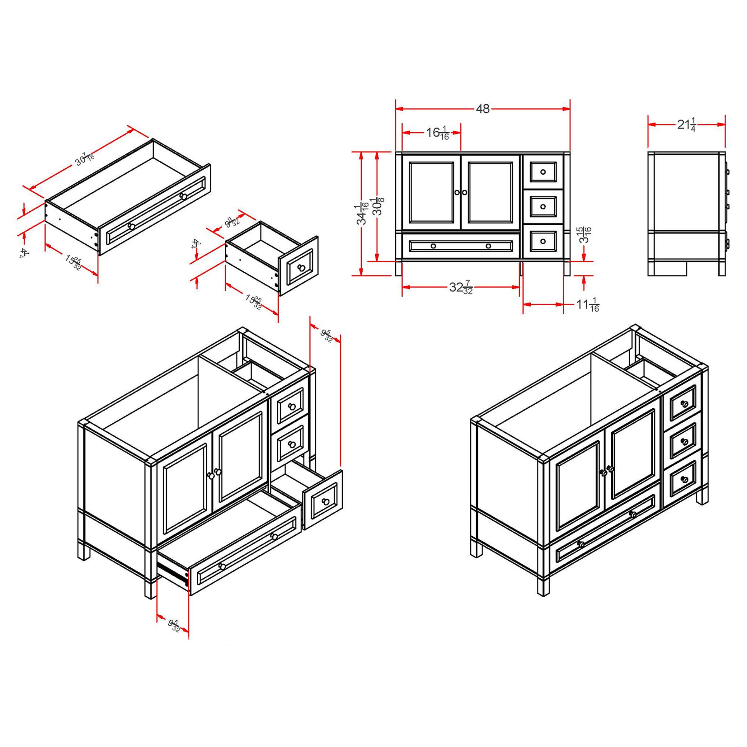 Update your bath with the detailed elegance of the Williamsburg 48” Bathroom Sink Vanity 3-Piece Set by Alaterre Furniture. Constructed from solid pine wood and composite wood, this wood vanity features soft-close doors, a large bottom drawer, 3 deep side drawers, nickel hardware, and adjustable height levelers for stable installation (the top and sink are not included). The modern bathroom vanity set comes with a matching 24-inch-wide beveled glass bathroom vanity mirror and a bathroom shelf with 3 cubbies and 2 towel racks to help with bathroom organization. The Williamsburg Collection from Alaterre Furniture features premium quality solid wood bathroom vanities and coordinating pieces that can be self-assembled using the included manual or by referring to our helpful assembly videos.
