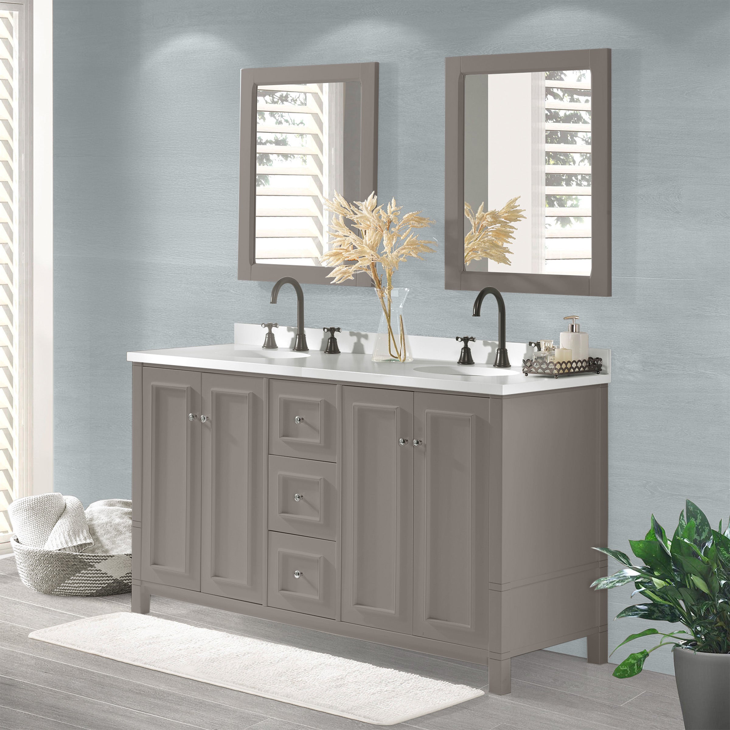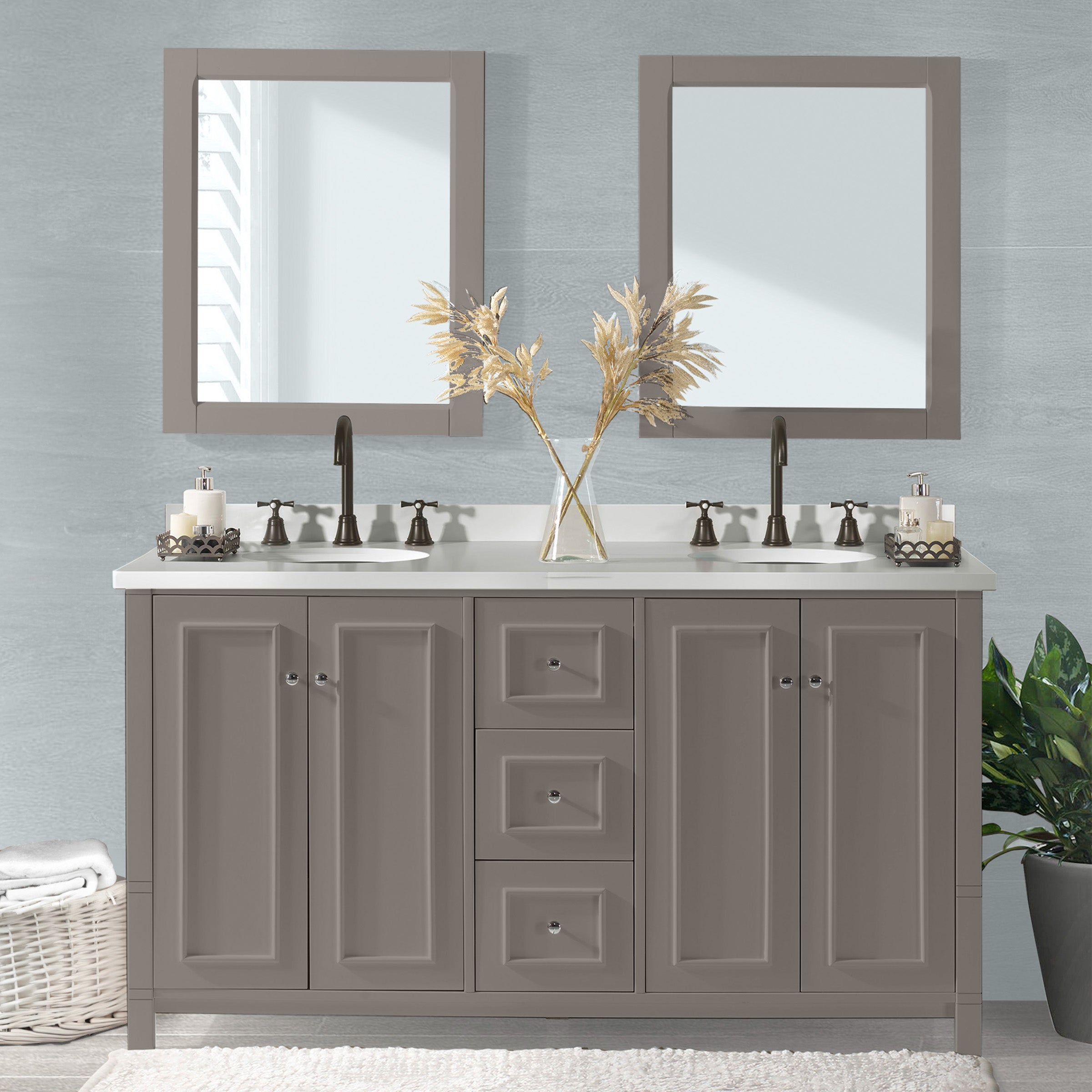 - Add detailed elegance and quality construction to your bathroom remodel with this bathroom sink cabinet set by Alaterre, which includes a gray vanity with two matching mirrors
