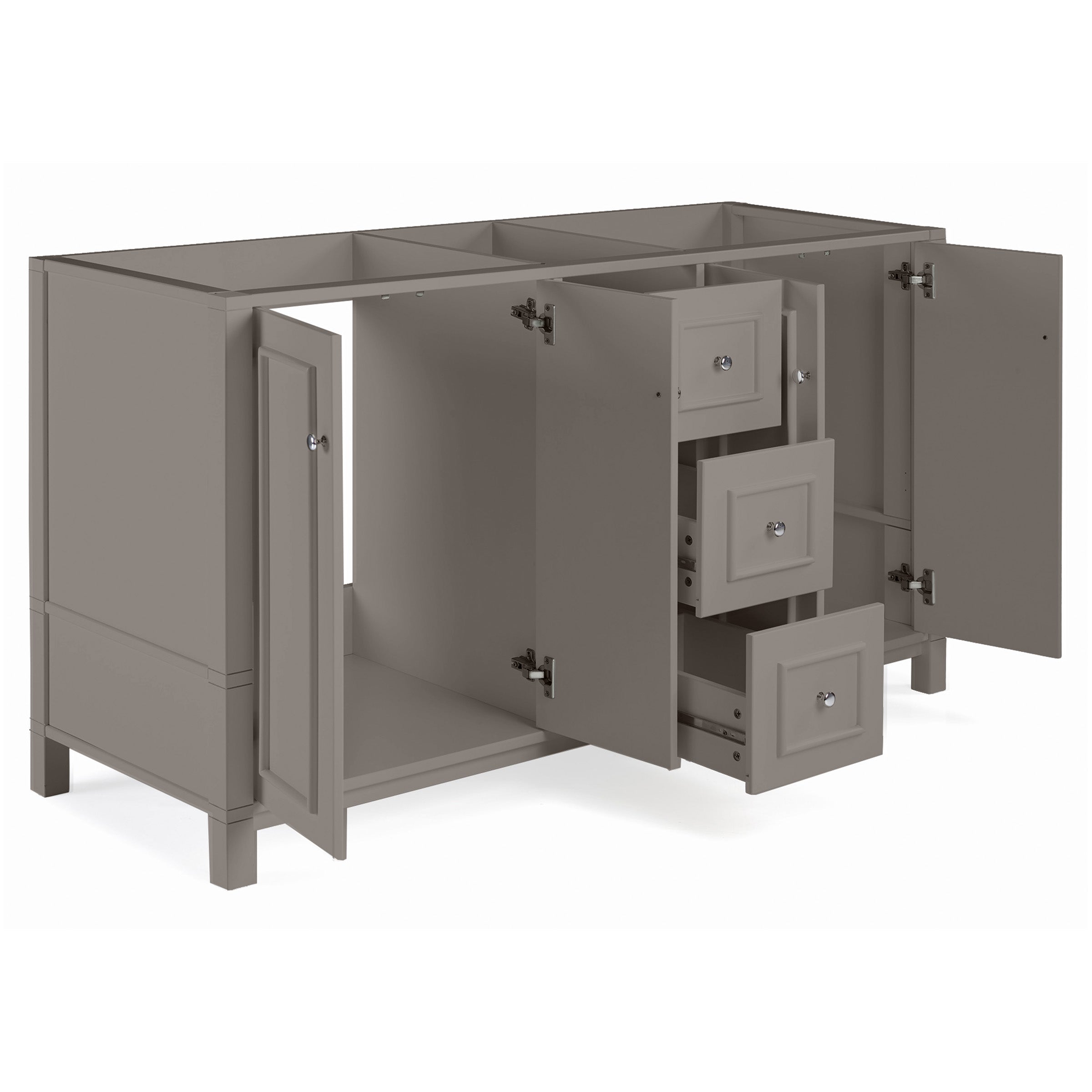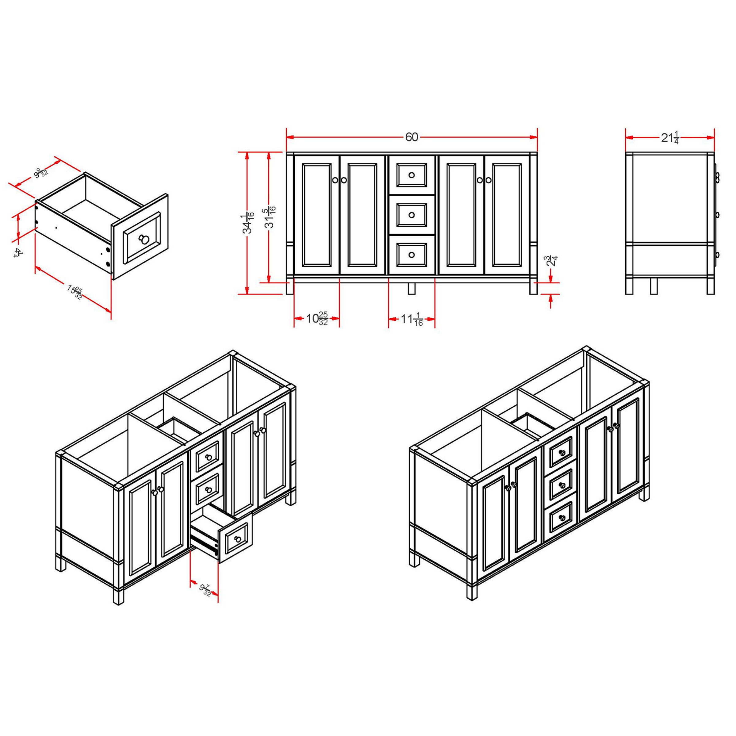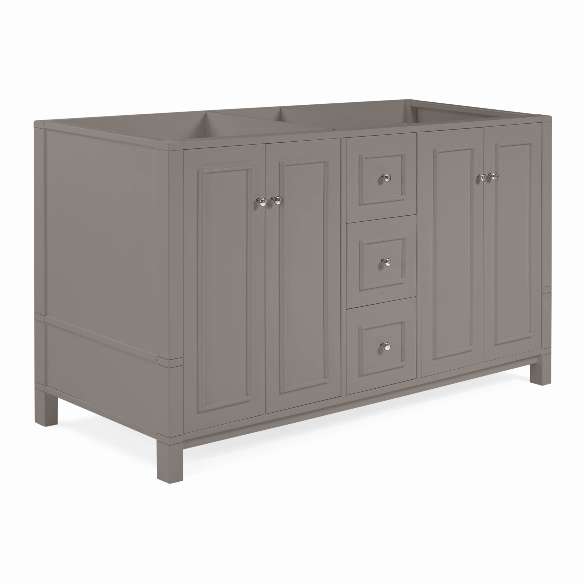 - The 60-inch bath vanity features soft-close doors and fits a 61-inch-wide by 22-inch-deep top with double sinks (not included)