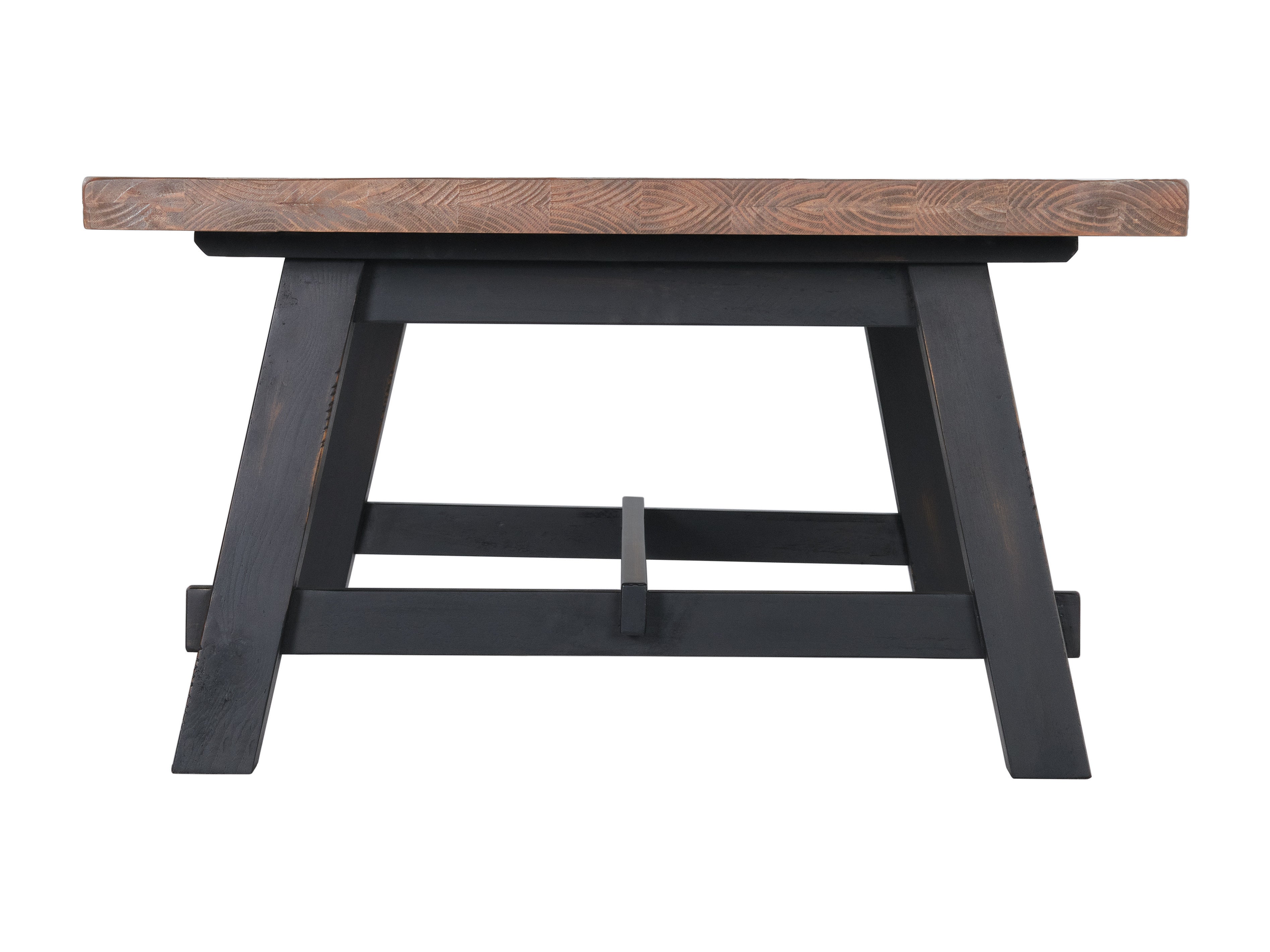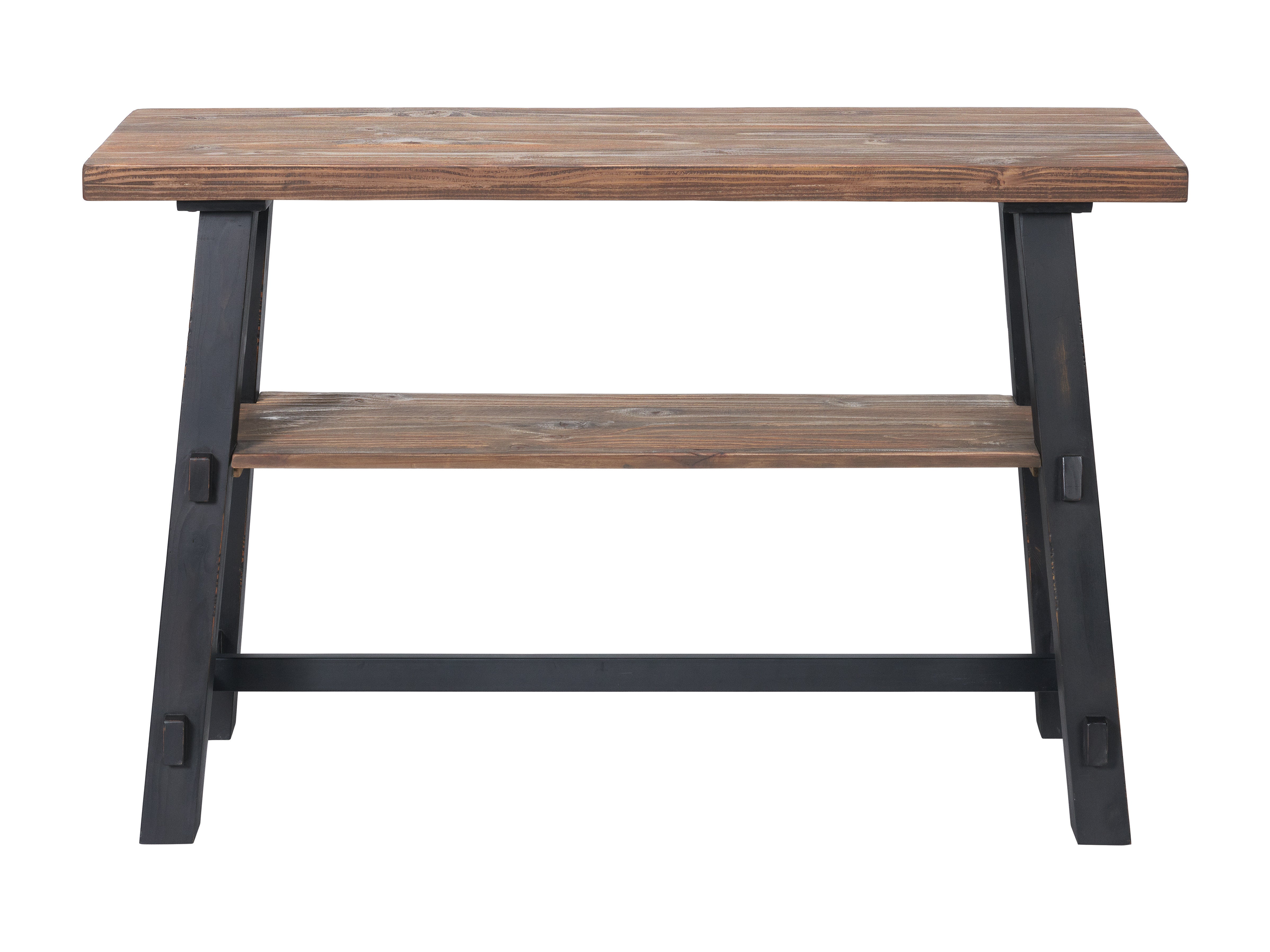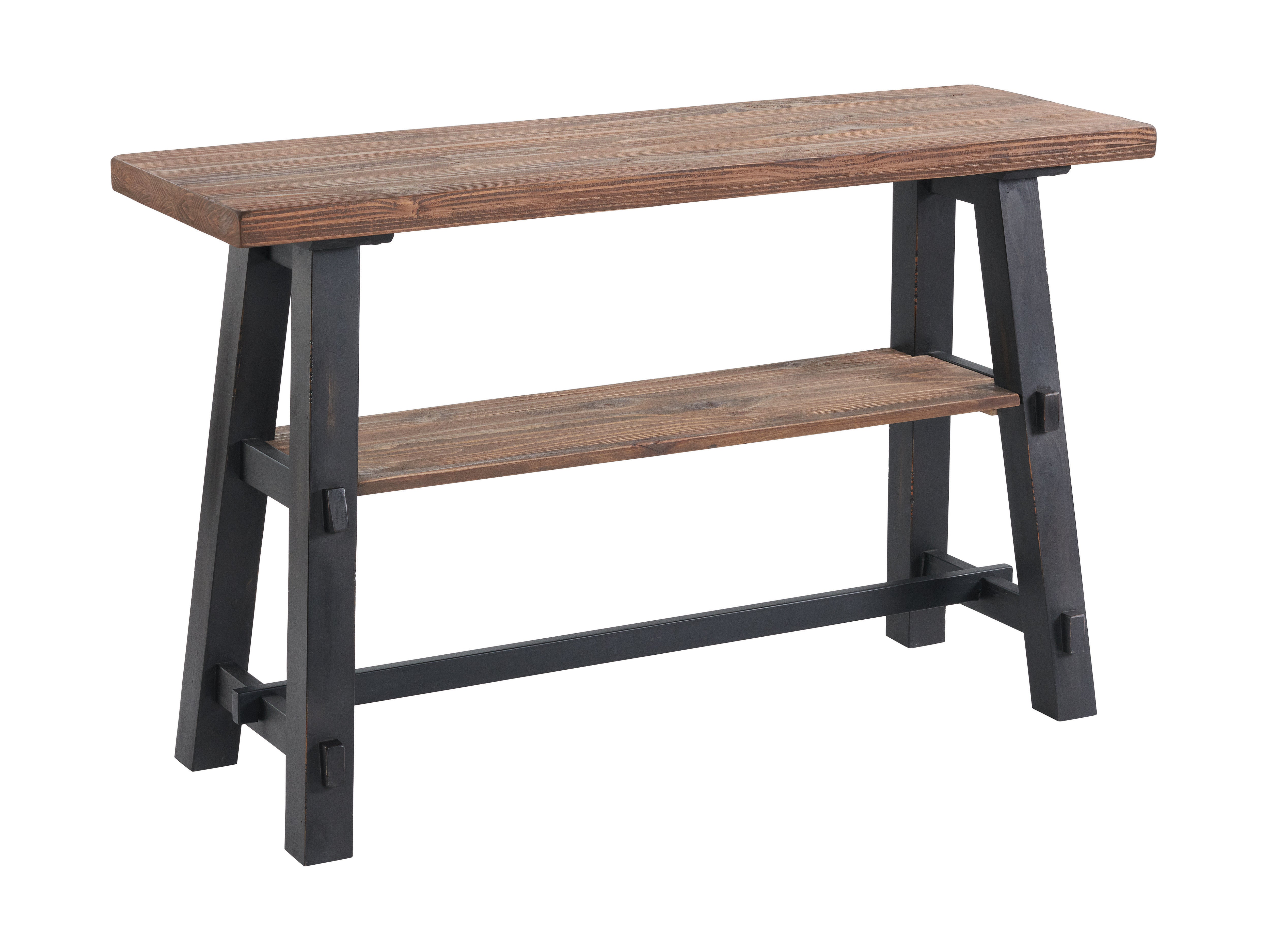 Add a unique touch to your home with this collection The lightly distressed black sawhorse leg design gives it a rustic, yet industrial feel. The solid wood top has a natural finish that features unique markings from the wood grain. This collection is sure to make a statement in your home. Made of solid wood.