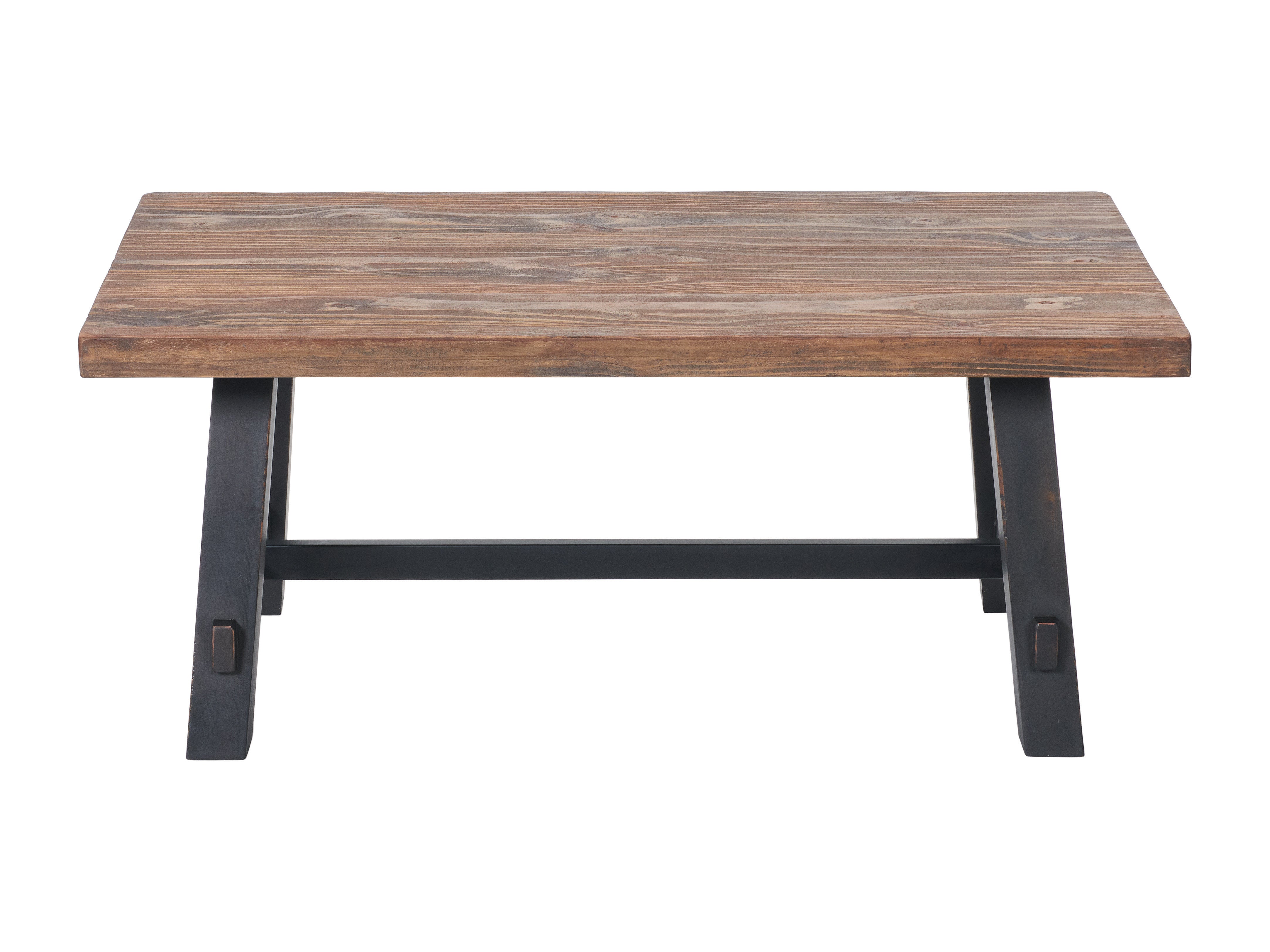 • [RUSTIC INDUSTRIAL DESIGN] Bring a rustic, yet industrial look to your home with this Adam 42" L Solid Wood Coffee Table] featuring a natural solid wood top and lightly distressed black sawhorse legs