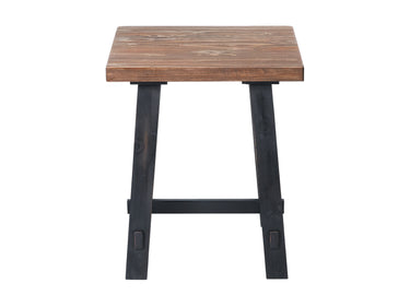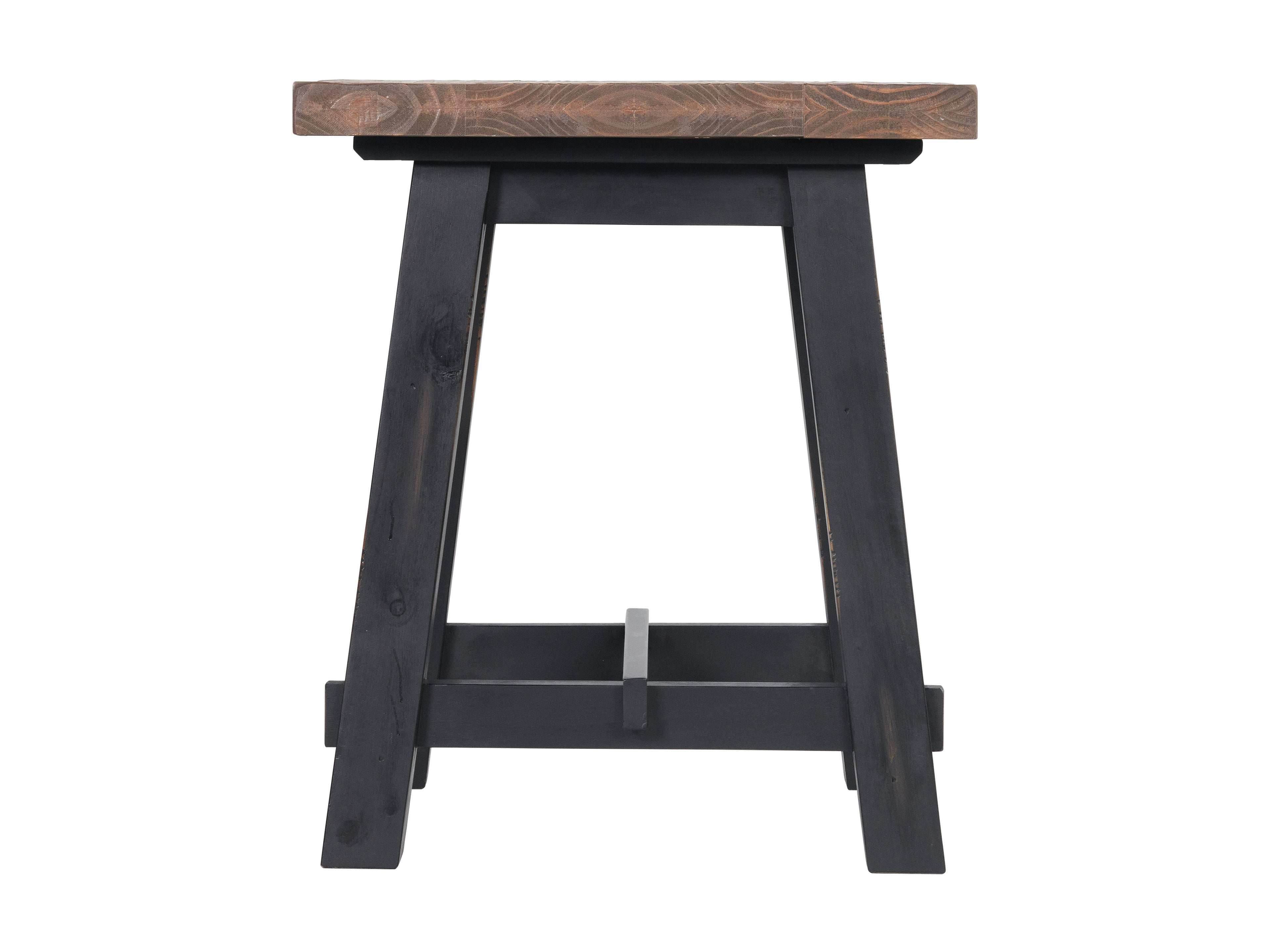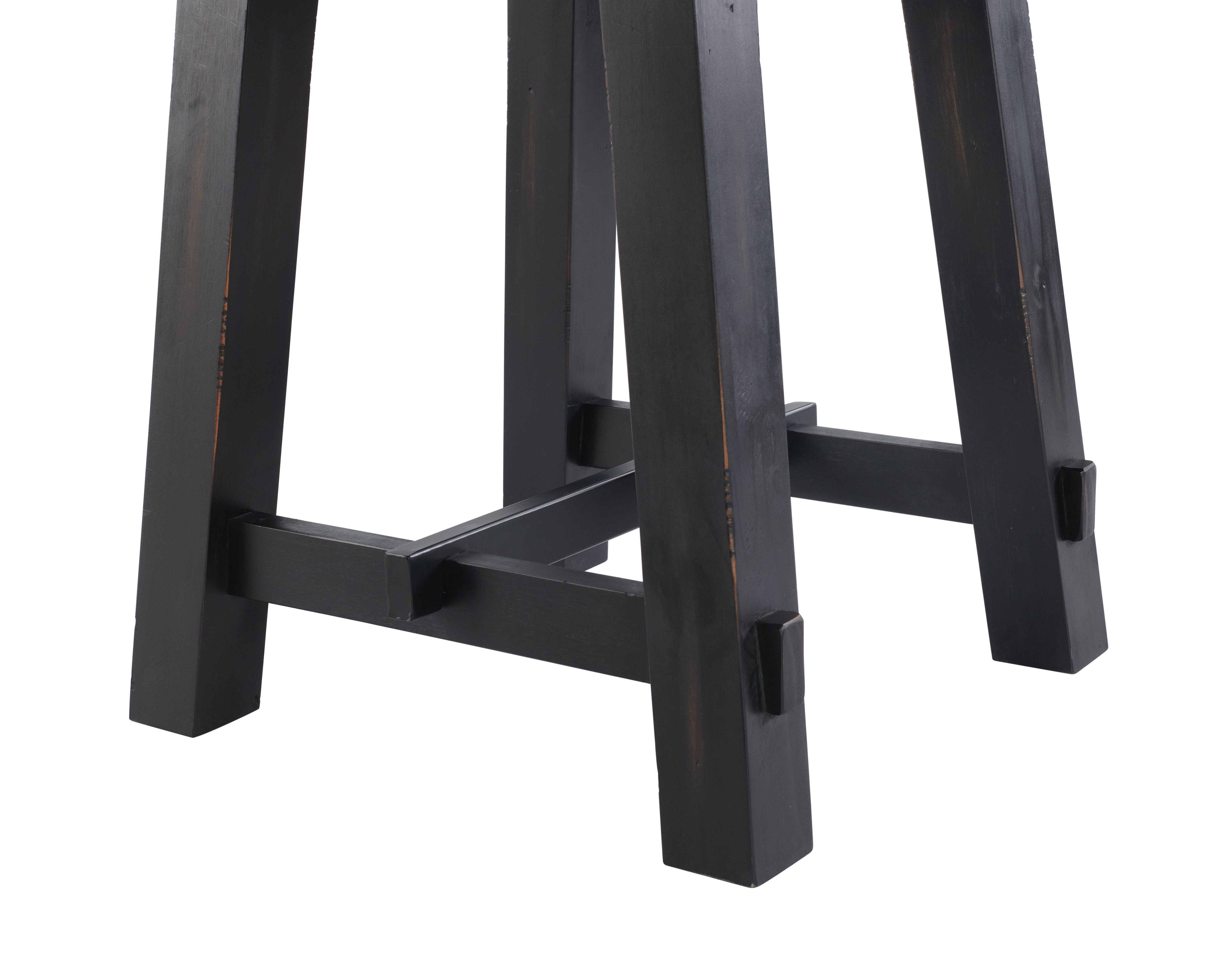 Add a unique touch to your home with this collection The lightly distressed black sawhorse leg design gives it a rustic, yet industrial feel. The solid wood top has a natural finish that features unique markings from the wood grain. This collection is sure to make a statement in your home. Made of solid wood.