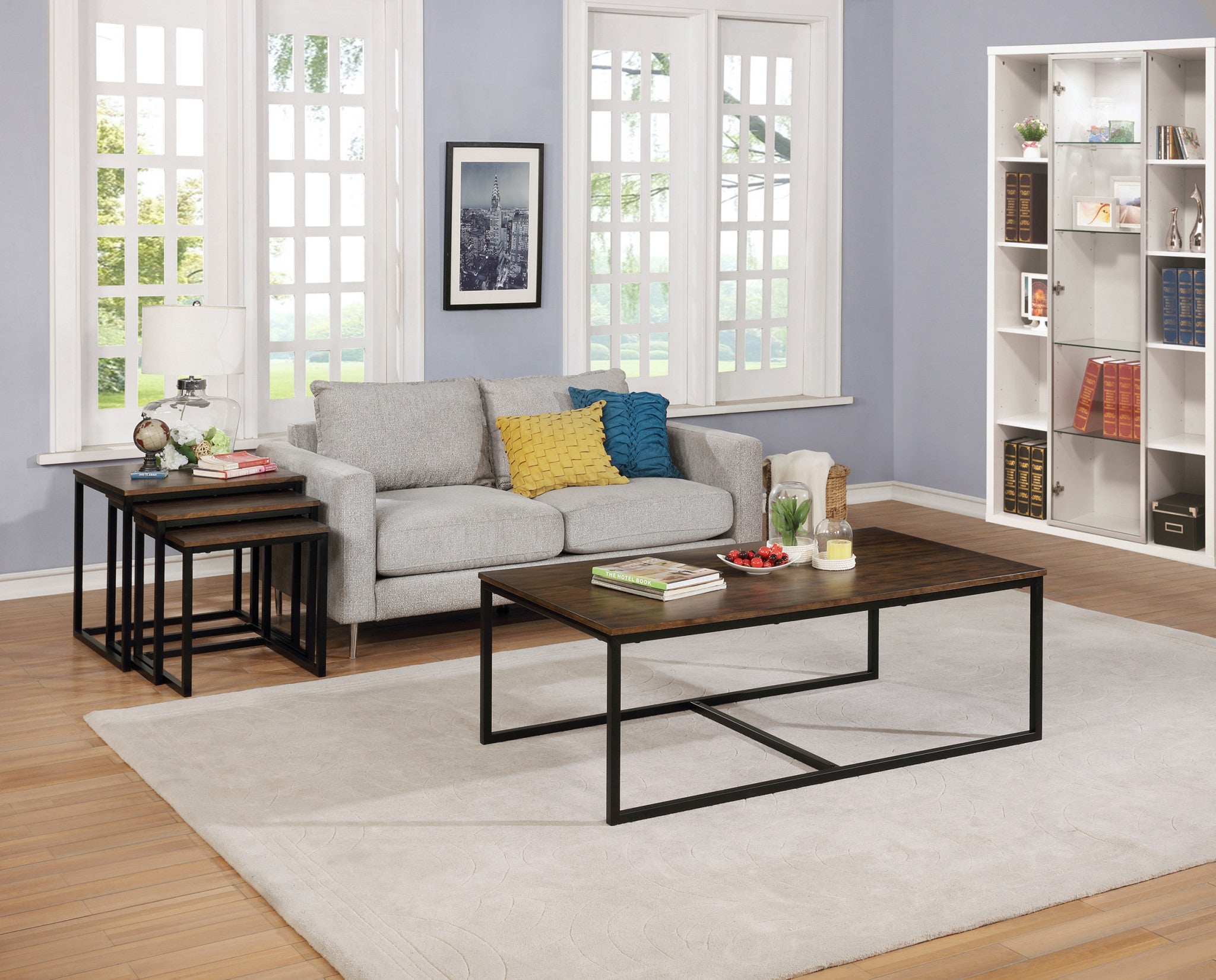 Designer, industrial style in these gorgeous dark-stained nesting tables with metal legs. The Arcadia collection features pieces that are boldly sized to make a strong statement in your living space. The metal, sled legs on each piece and dark colors create a streamlined look. These are the perfect pieces for a clean, modern space.