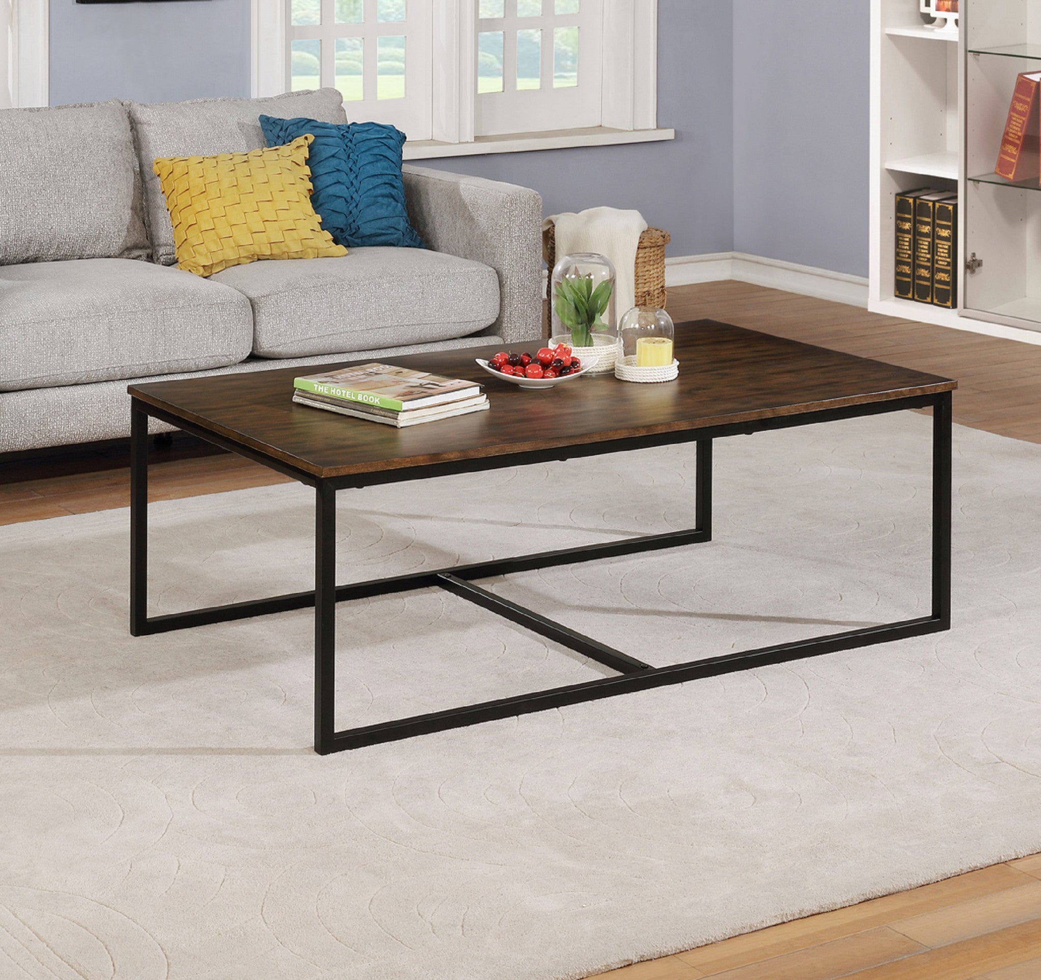 • DURABLE AND TIMELESS – Crafted with solid acacia wood and sturdy metal sled legs, this modern industrial coffee table is built to last. The antiqued mocha finish adds warmth and character, making it an enduring centerpiece for any living space.