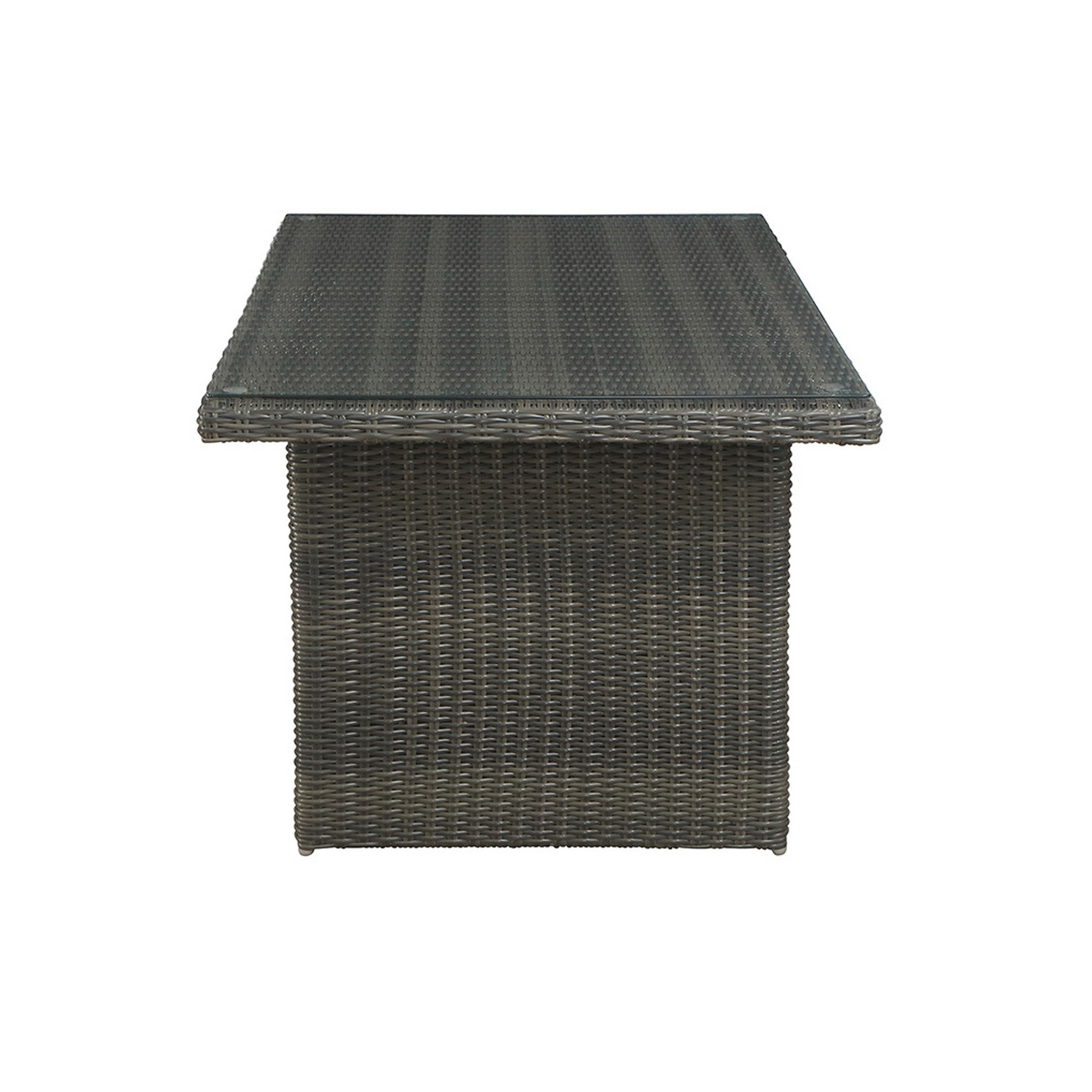 • A LA CARTE DESIGN: Featuring elegant grey all-weather wicker, 58" W x 33" D x 26" H dimensions, and a 0.25" thick tempered glass top with suction cups, this cocktail table creates a fine-dining atmosphere, perfect for a relaxing night in