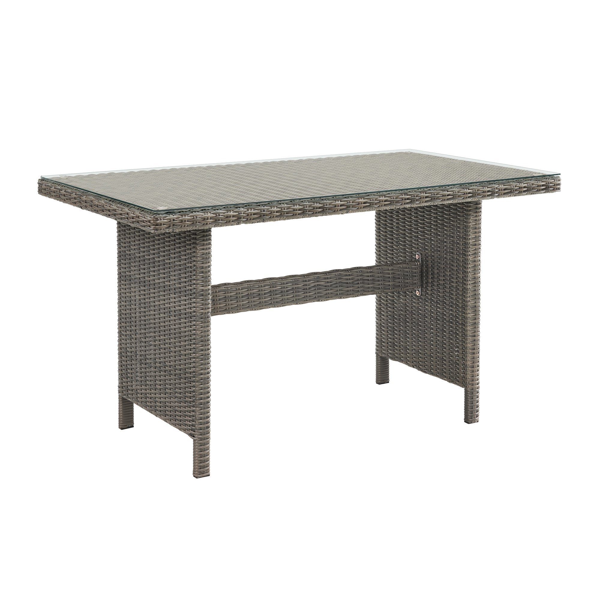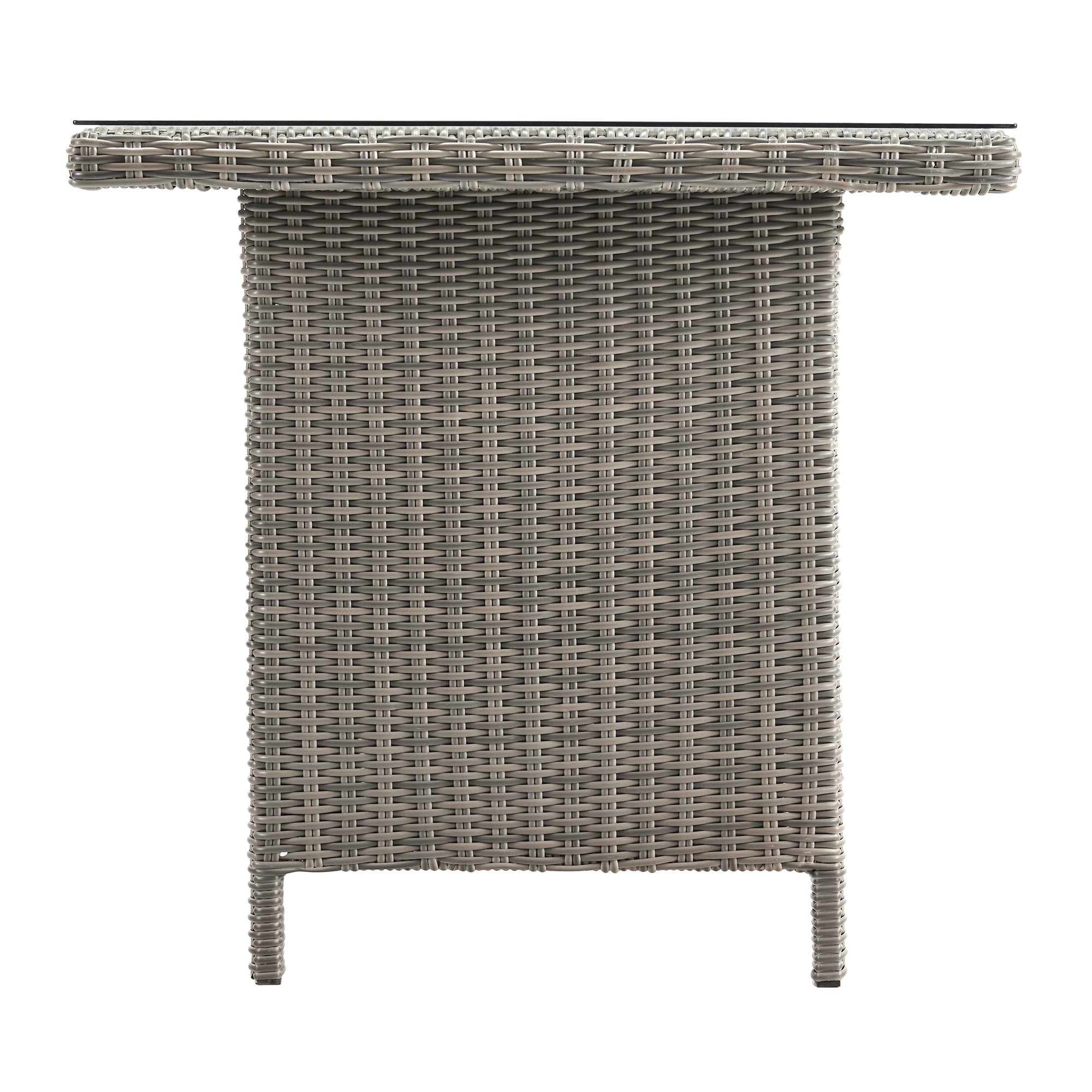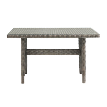 Take outdoor entertaining to the next level with this gorgeous all weather wicker collection. All-weather resin wicker surrounds a 100% aluminum rust-proof, powder coated frame. With its simple and stylish design, this dining table is an ideal choice for any patio. Seating up to four people, this table provides comfort and is excellent for anyone who loves to host outdoors. The neutral finish will easily match with any accent pieces in your outdoor space, or pair these beautiful pieces with other items in the this collection for the perfect outdoor entertainment space! Durable all-weather wicker construction will withstand many weather conditions.
