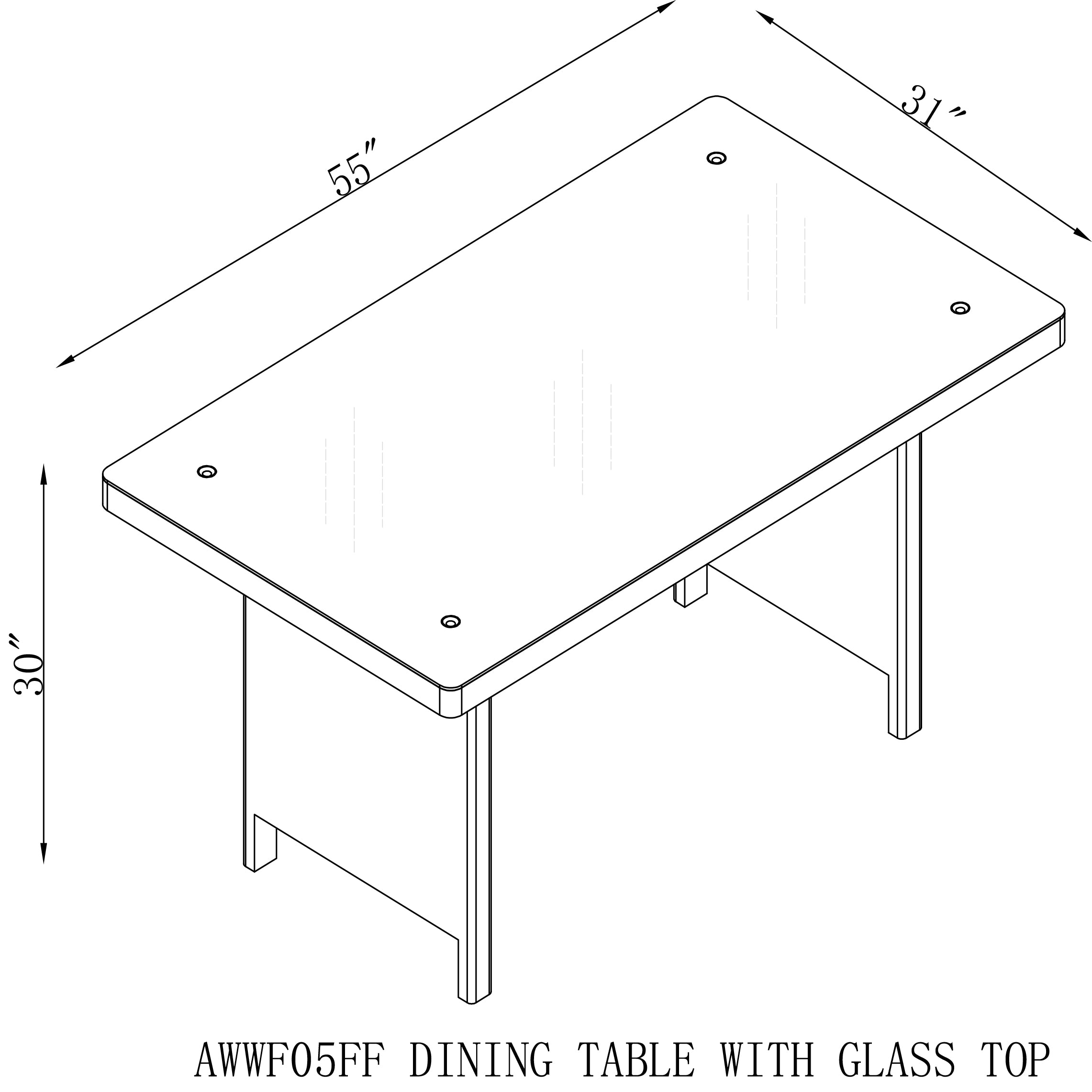 - [DIMENSIONS & DESIGN] Asti All-Weather Wicker Dining Table (55" W x 31" D x 30" H) with a sleek glass top. Seats up to 4 guests, blending seamlessly with modern patio decor