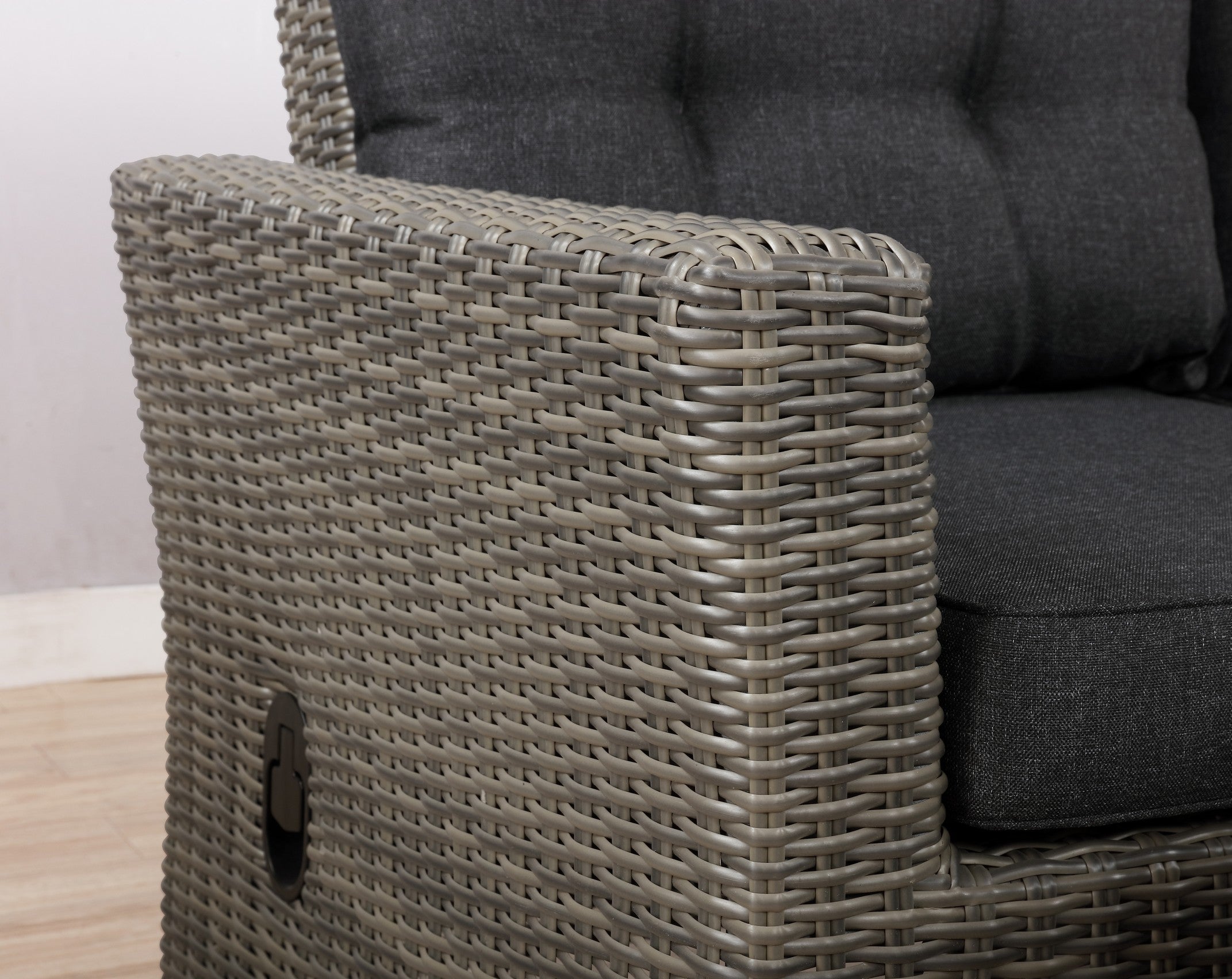 Take outdoor entertaining to the next level with this gorgeous all weather wicker collection. All-weather resin wicker surrounds a 100% aluminum rust-proof, powder coated frame. Weather-resistant polyester cushions add to the comfort and style of this collection.