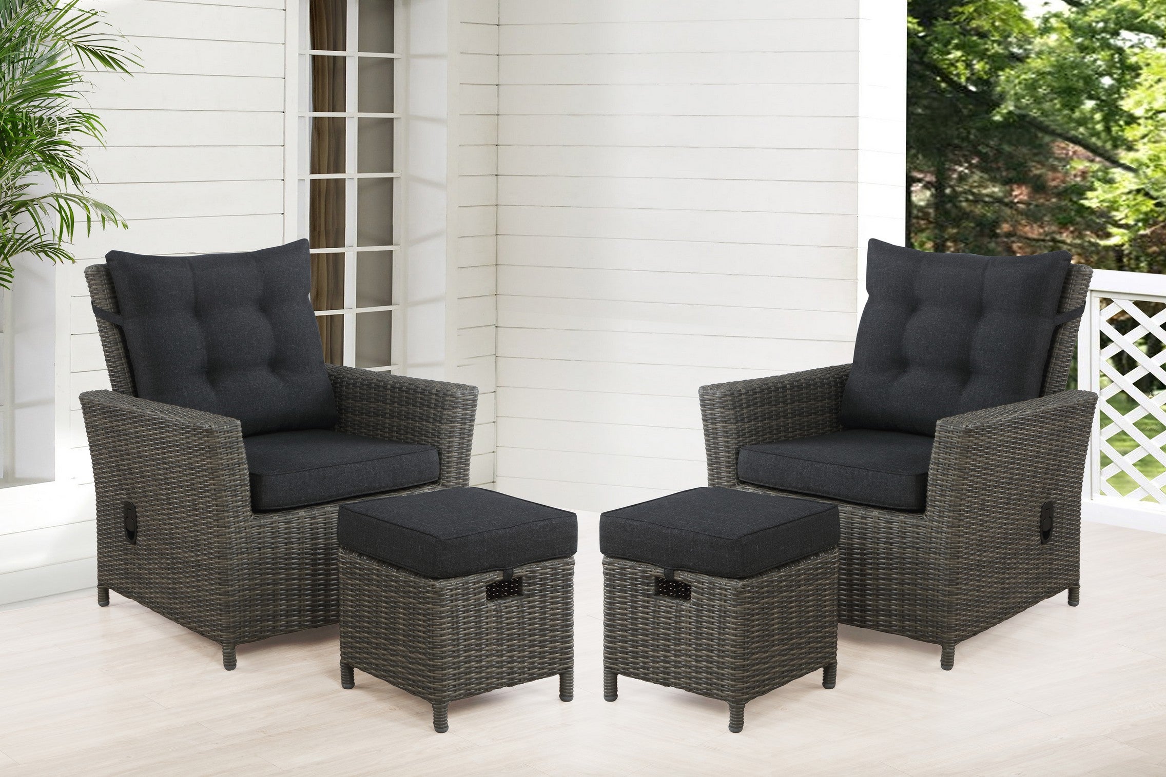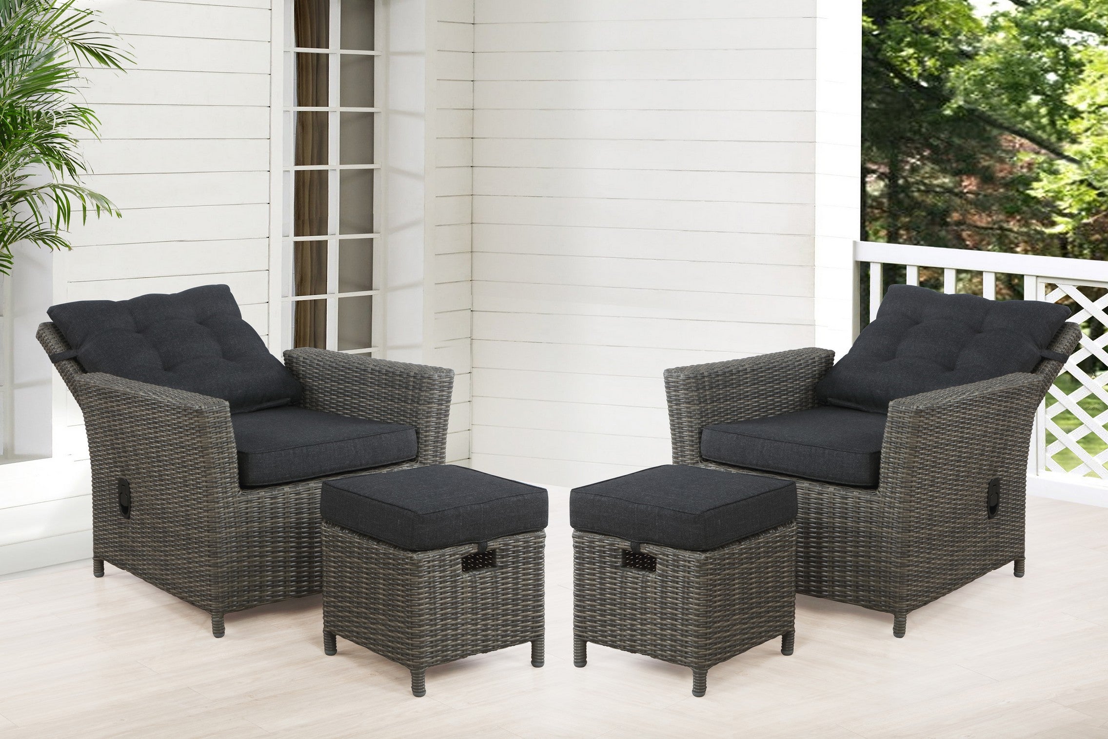 Asti All-Weather Wicker 4-Piece Outdoor Seating Set with Two Reclining Chairs and Two Ottomans