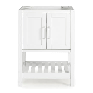 Update your bathroom with the fresh, clean look of the Bennet 24” Bathroom Sink Vanity by Alaterre Furniture. Constructed from solid pine wood and composite wood, this small white vanity features soft-close Shaker doors, an open bottom shelf, nickel hardware, and adjustable height levelers for stable installation. The modern bathroom vanity accommodates a 25-inch-wide by 22-inch-deep top with 1 center-set sink basin; the top and sink are not included, allowing you to choose the style that best matches your décor. The Bennet Collection from Alaterre Furniture features premium quality solid wood bathroom vanities that can be self-assembled using the included manual or by referring to our helpful assembly videos.