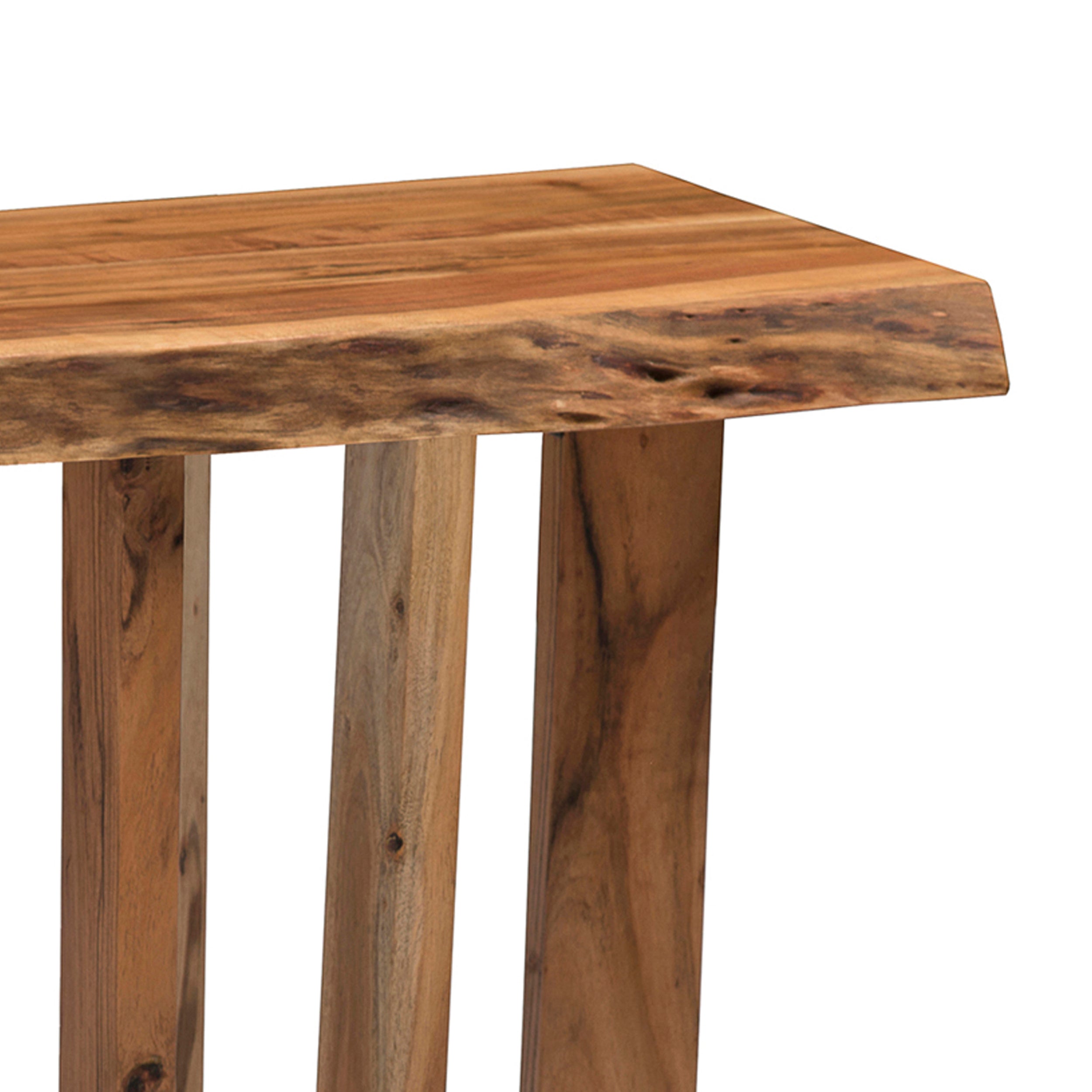 Berkshire is gorgeous natural Acacia wood with live edge and solid legs; uniquely yours as no two pieces are exactly alike. Each tabletop is unique; no two tops will be exactly alike. Constructed of natural acacia wood. Each of our live edge products includes nylon floor protectors. The knots and cracks add to the wood's character. A clear natural finish enhances the beautiful features in each piece of wood.