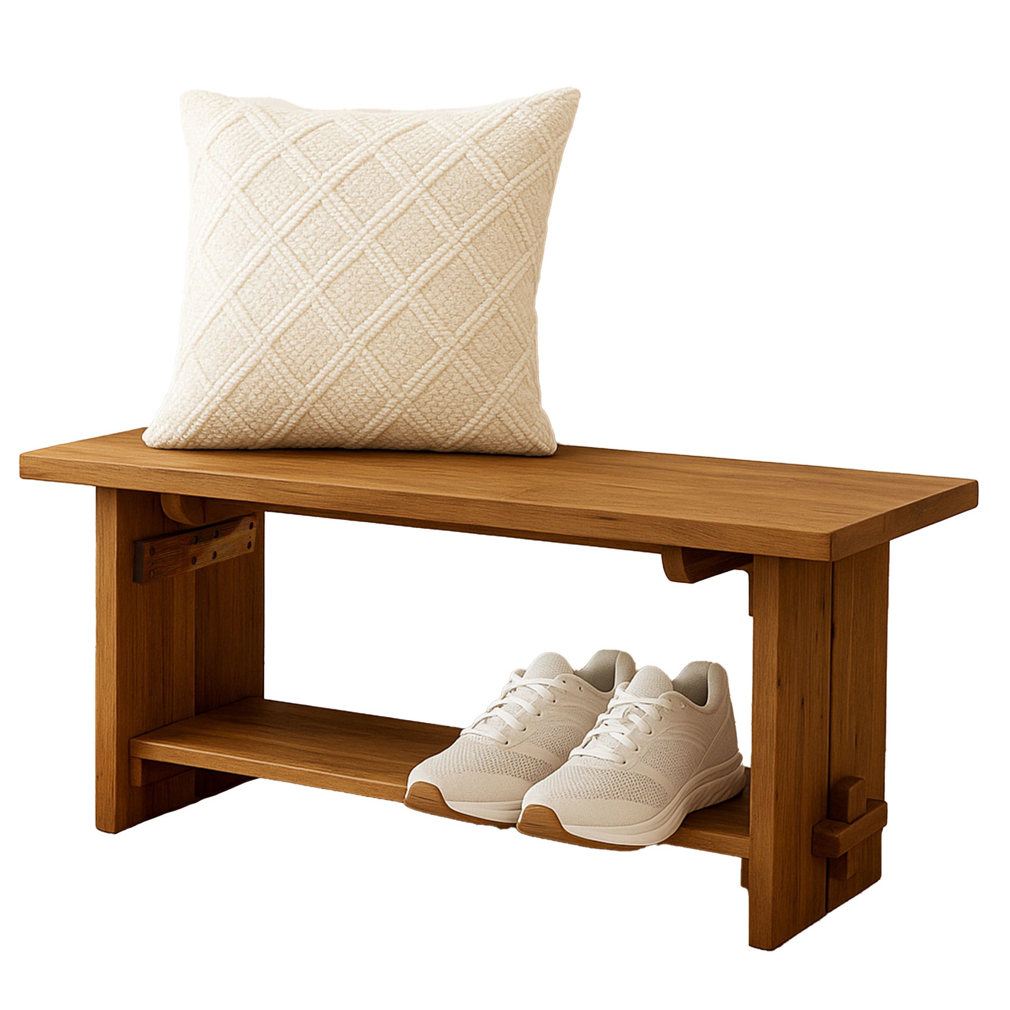 - VERSATILE RUSTIC STYLE – Aged natural wood finish and clean lines make this bench a perfect accent for modern rustic, farmhouse, or boho-inspired interiors. Use as extra seating, a decorative hallway bench, or a functional shoe bench.