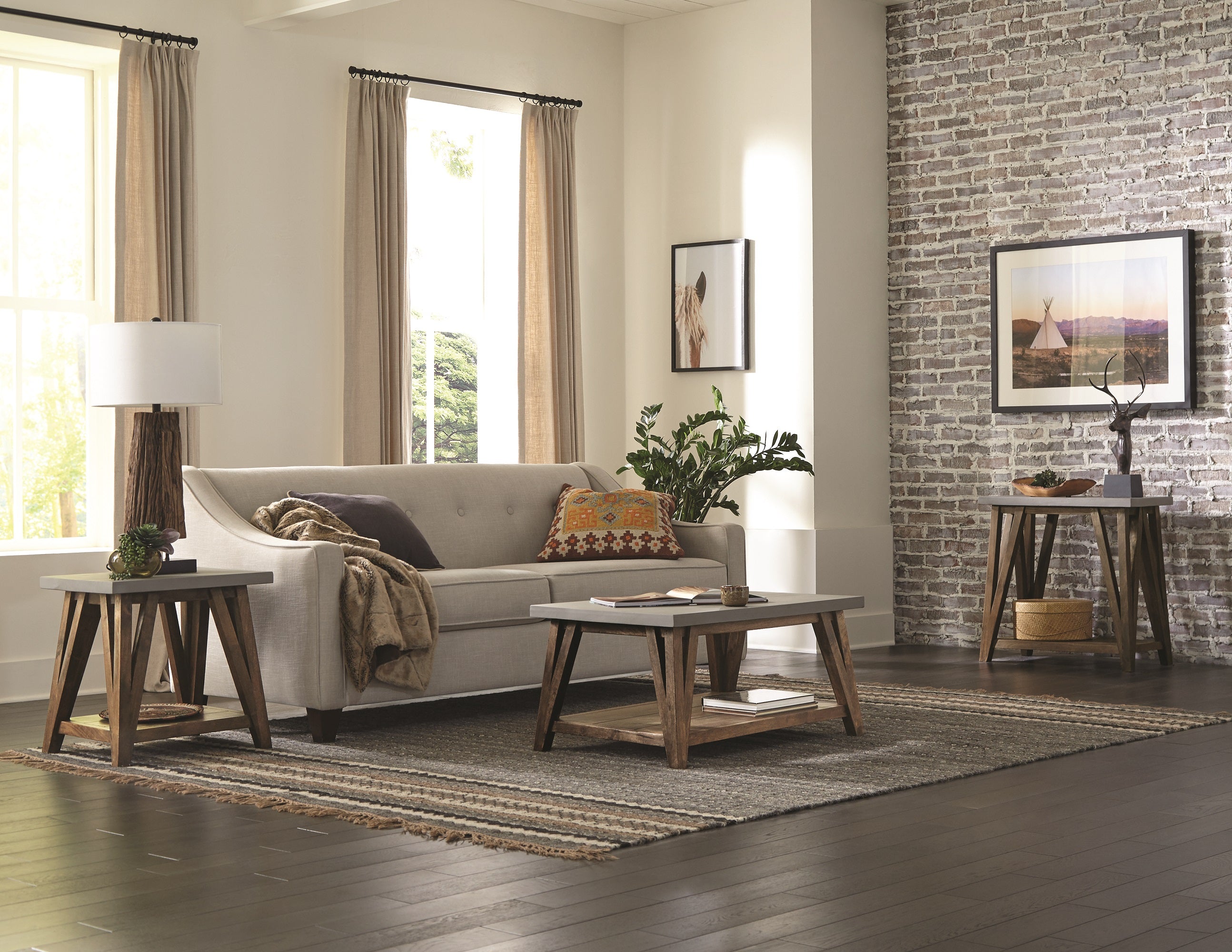 Decorate your living space with this new innovative collection. Modern, industrial Concrete-coated-topped tables with solid wood base and shelf will offer a fresh new look to your living room. We see this collection in a modern city loft or a transitional living room that needs just a pop of updated style. Sleek and clean, these pieces combine both style and functionality.