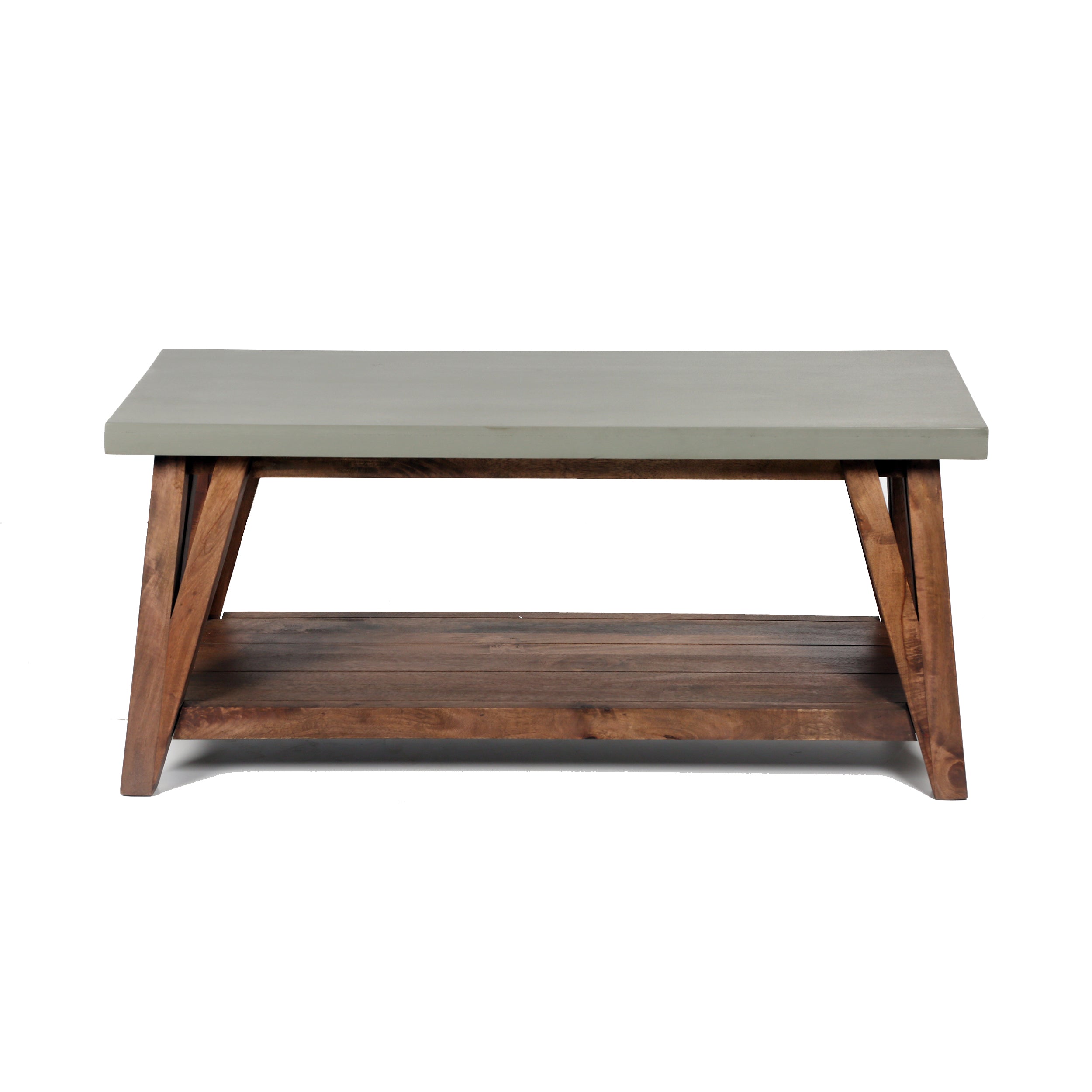 Decorate your living space with this new innovative collection. Modern, industrial Concrete-coated-topped tables with solid wood base and shelf will offer a fresh new look to your living room. We see this collection in a modern city loft or a transitional living room that needs just a pop of updated style. Sleek and clean, these pieces combine both style and functionality.