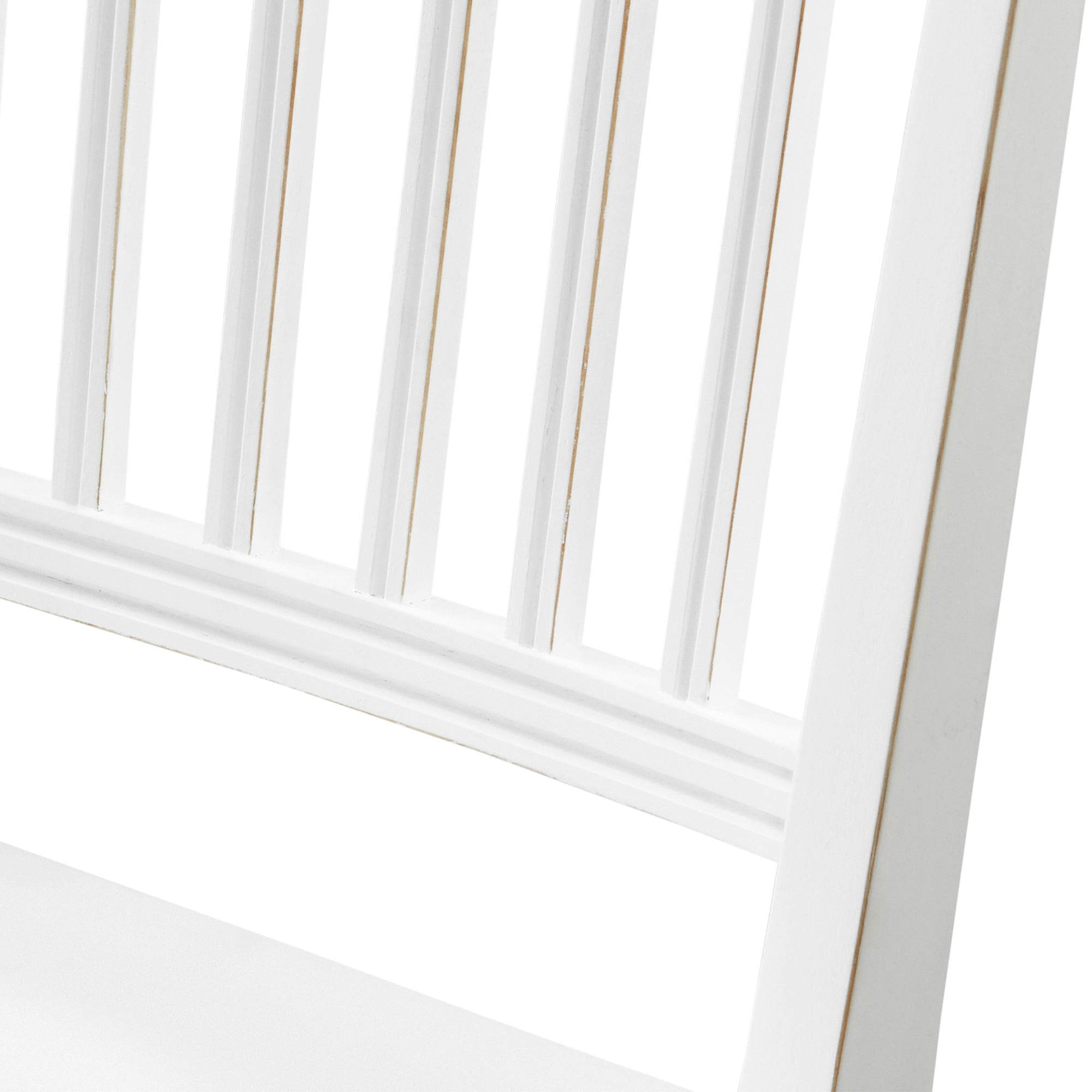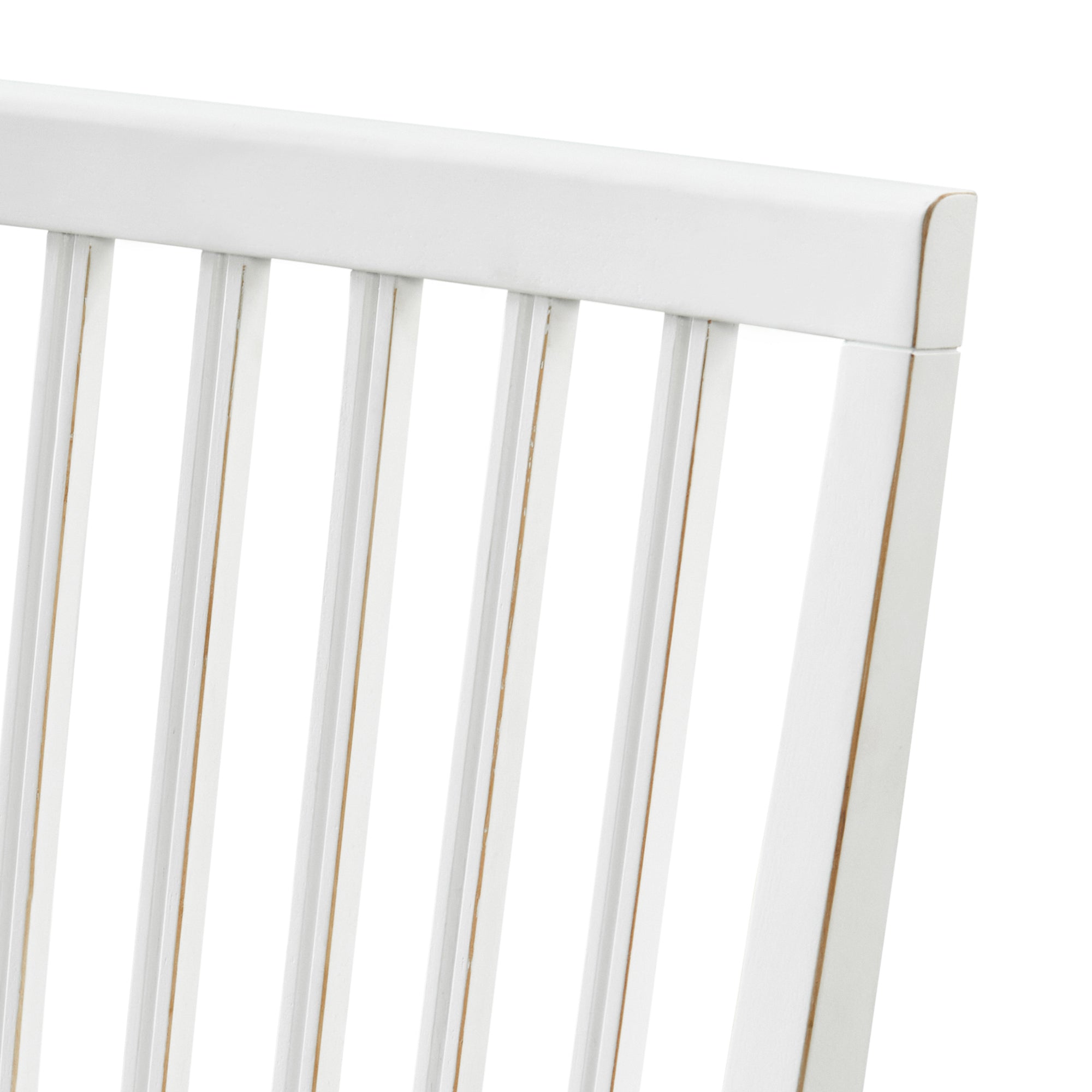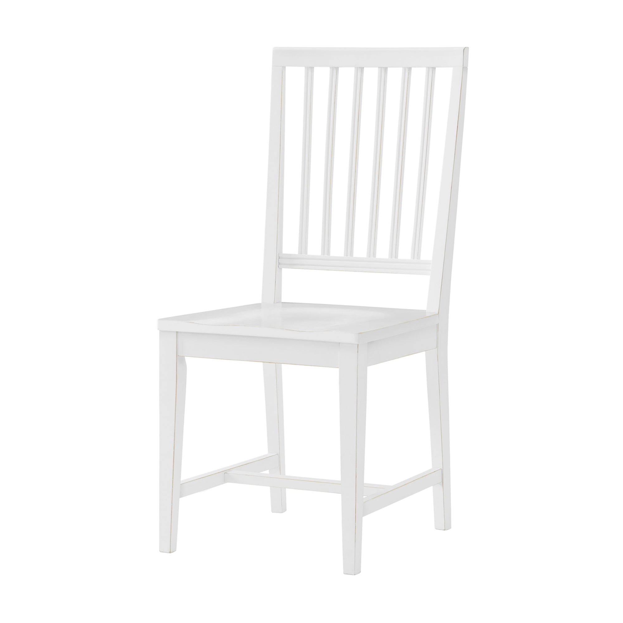 Enjoy making memories around this gorgeous dining table with four dining chairs. This versatile and neutral design goes well with many aesthetics from modern farmhouse to coastal retreat. The two-tone finish serves up twice the charm and character. The table feature a sturdy construction with X-leg trestle base. Constructed of solid birch, composite wood and cherry veneer. The solid white slatted back chairs are the perfect compliment to this set.