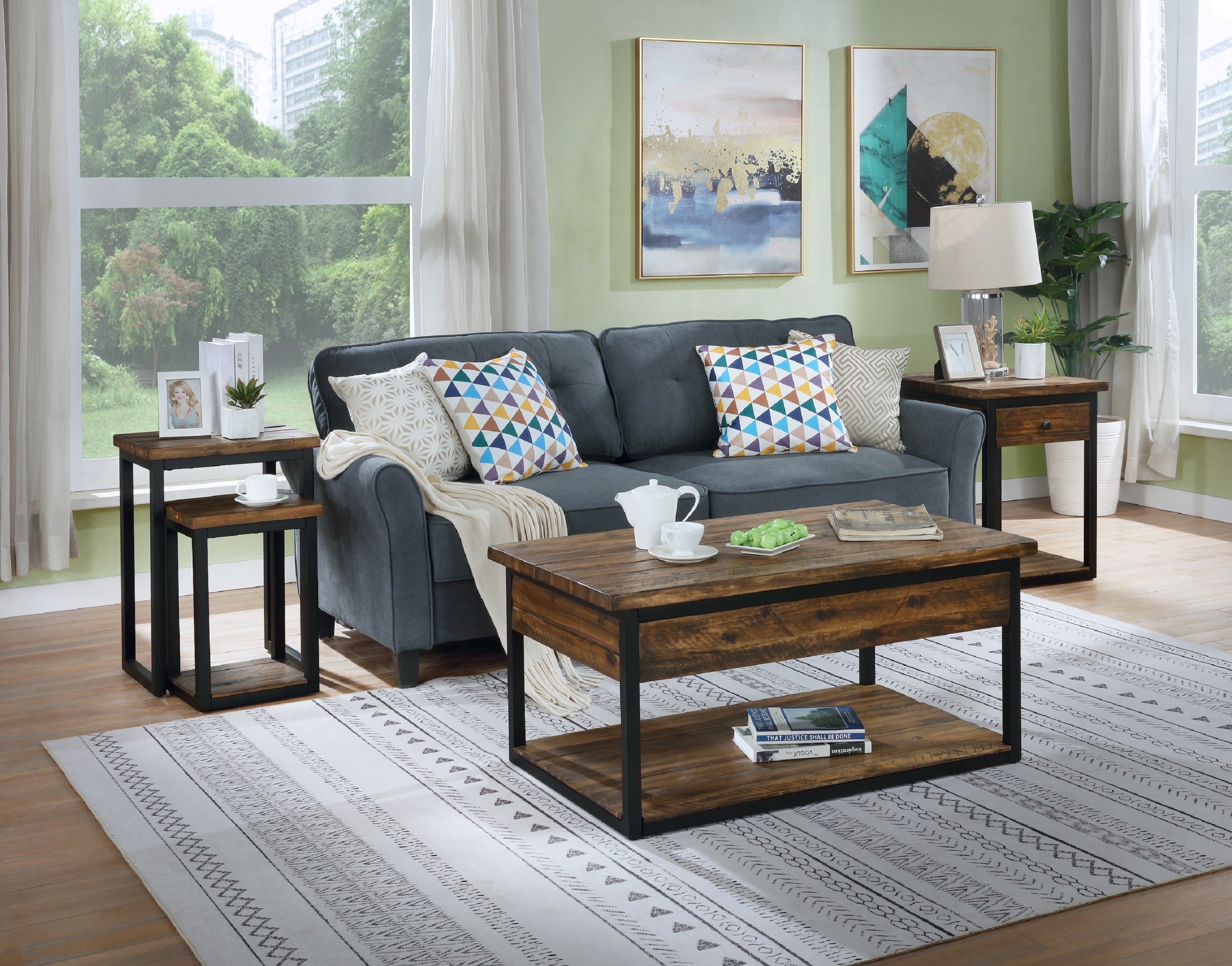- [FUNCTIONAL DESIGN] This 48" coffee table and versatile nesting tables offer functional storage and style. Perfect for farmhouse or industrial decor, they elevate any living room layout