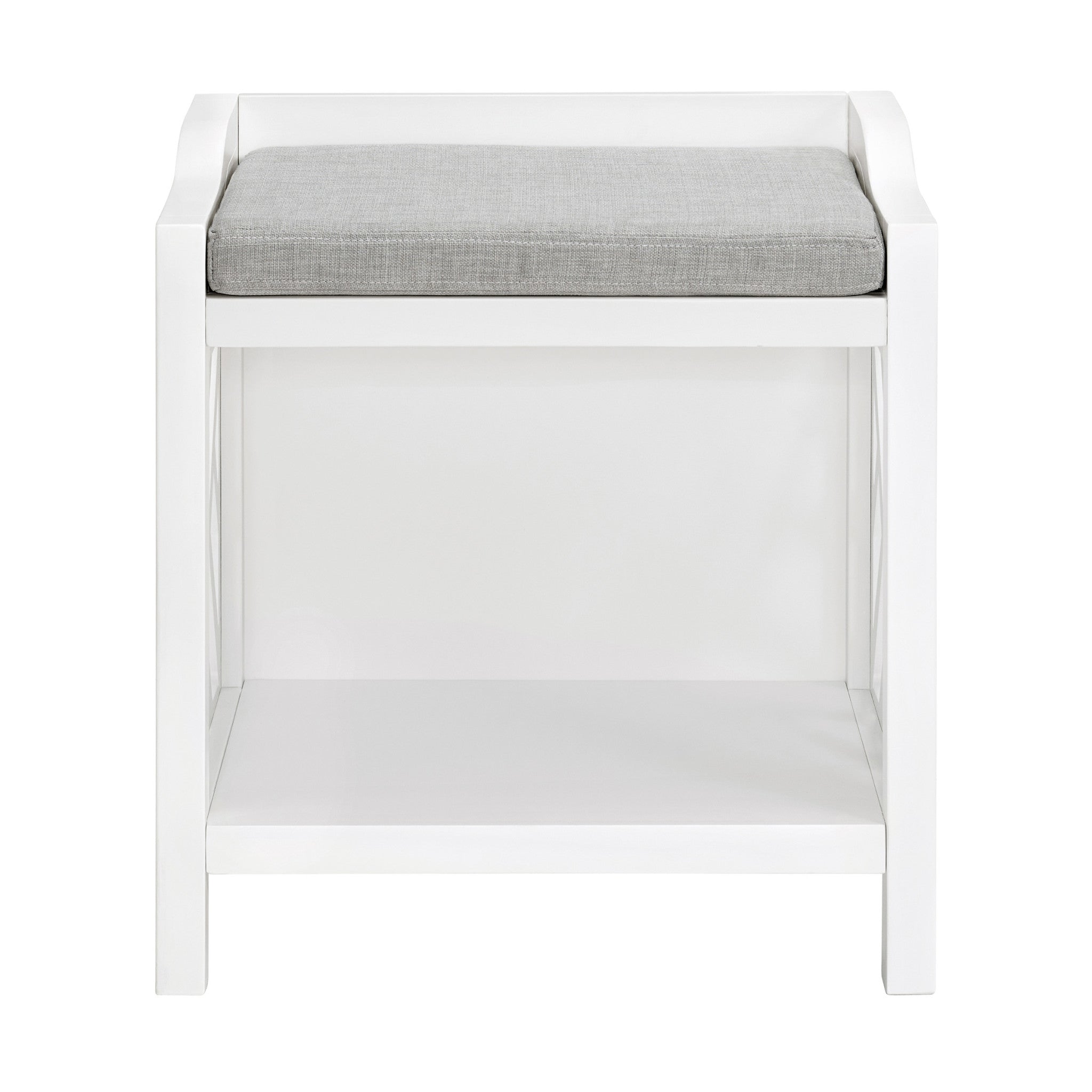Add extra storage and seating to your entryway, kitchen, bedroom, or bathroom with the Storage Bench from the Coventry Collection by Alaterre Furniture. This entryway bench features a removable padded cushion with an open cabinet space underneath for convenient bathroom storage and has a weight capacity of 250-pounds. This shoe bench is quick and easy to put together with all the necessary hardware as well as tools included, and it’s made of durable pine wood for durable and long-lasting use.