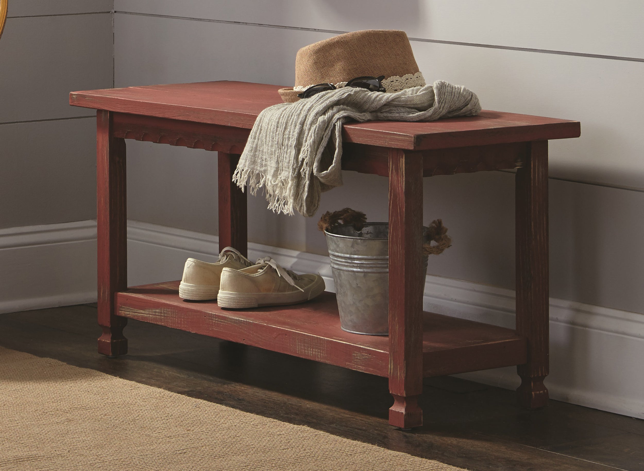- TIMELESS RUSTIC ACCENT FURNITURE WITH EASY CARE – Featuring scalloped edges, turned legs, and block details, this farmhouse accent bench combines beauty and function. Simply wipe clean with a dry cloth to maintain its distressed antique appeal effortlessly.