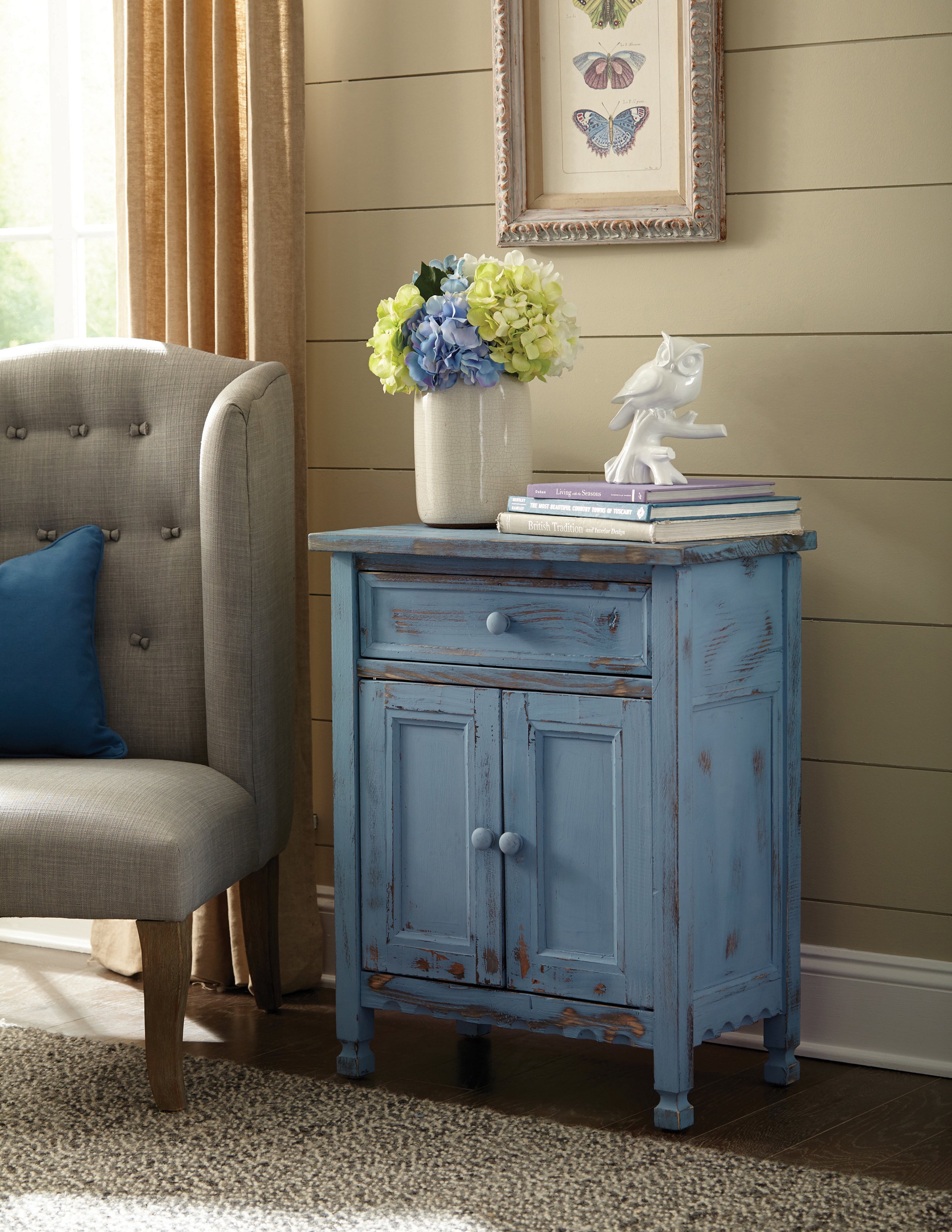 Country Cottage Accent Cabinet, Blue Antique Finish
