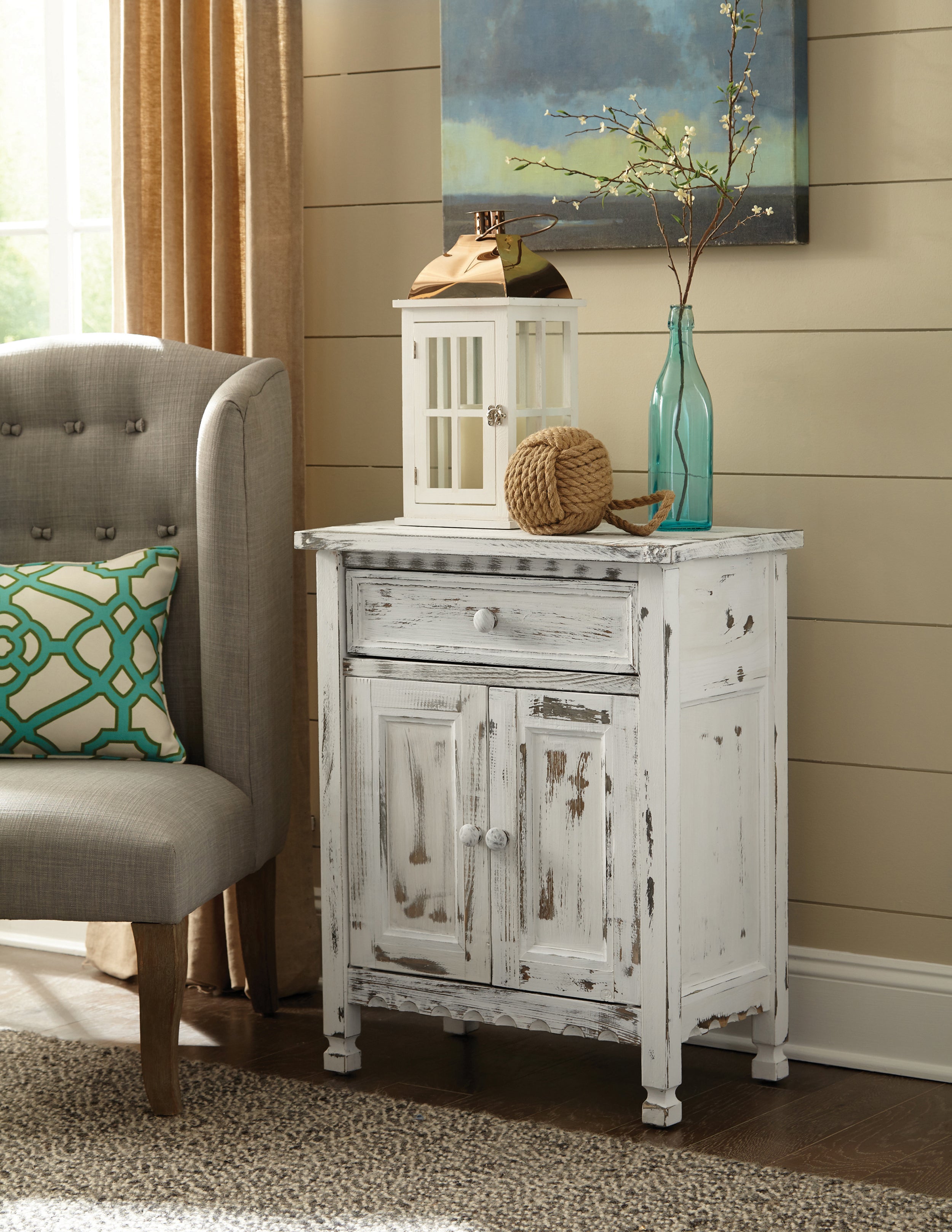 Country Cottage Accent Cabinet, White Antique Finish