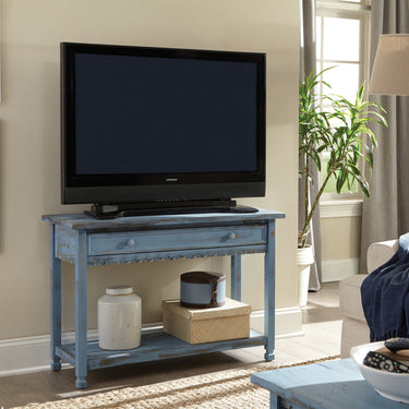 - FARMHOUSE CHARM WITH DISTRESSED FINISH – This Country Cottage Console Table features a beautifully distressed antique blue finish that brings authentic farmhouse style and vintage character to your entryway, living room, or hallway.
