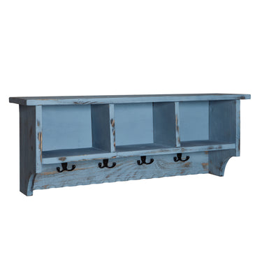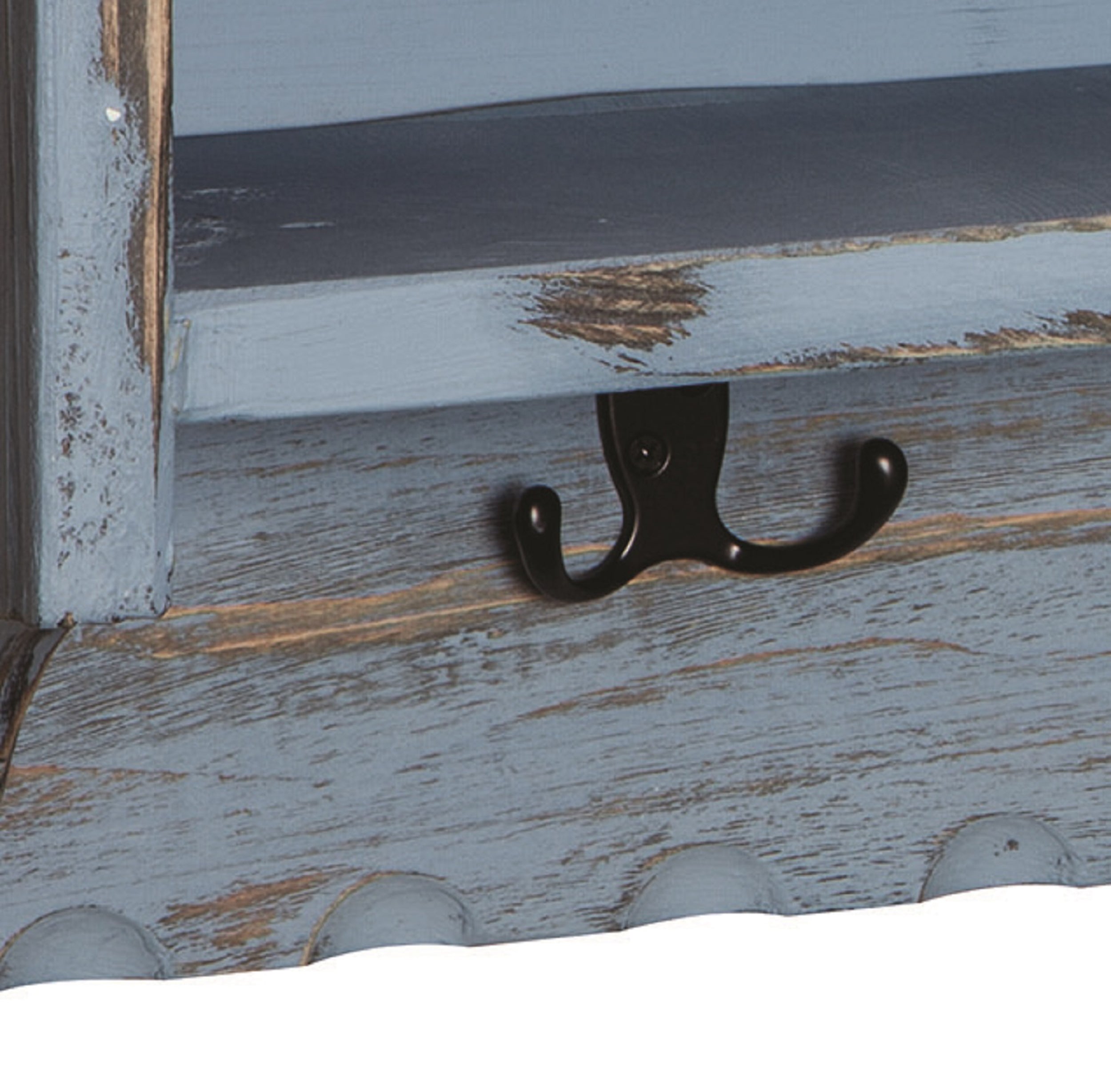 Country Cottage Coat Hook with Storage Cubbies, Blue Antique Finish