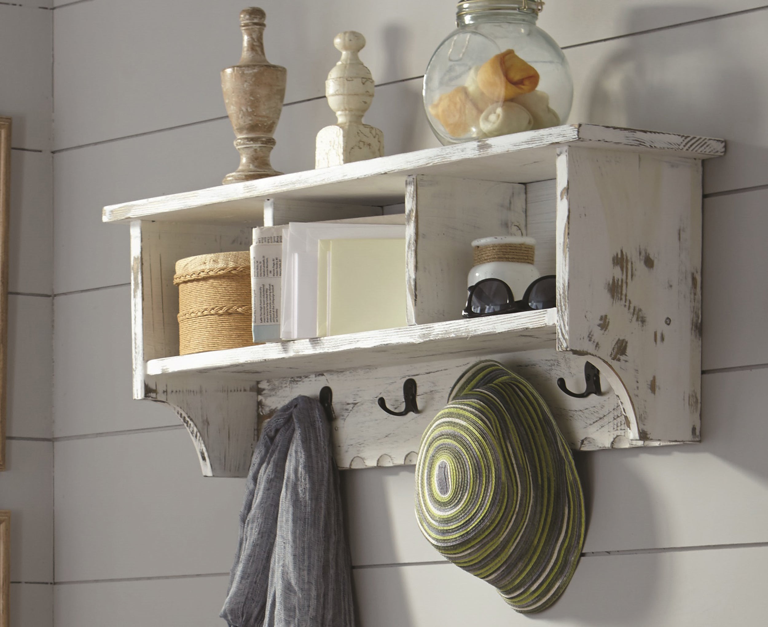 - [DECORATIVE AND DURABLE] This Country Cottage coat hook and storage unit features sturdy hooks and cubbies with a distressed white antique finish, perfect for any entryway