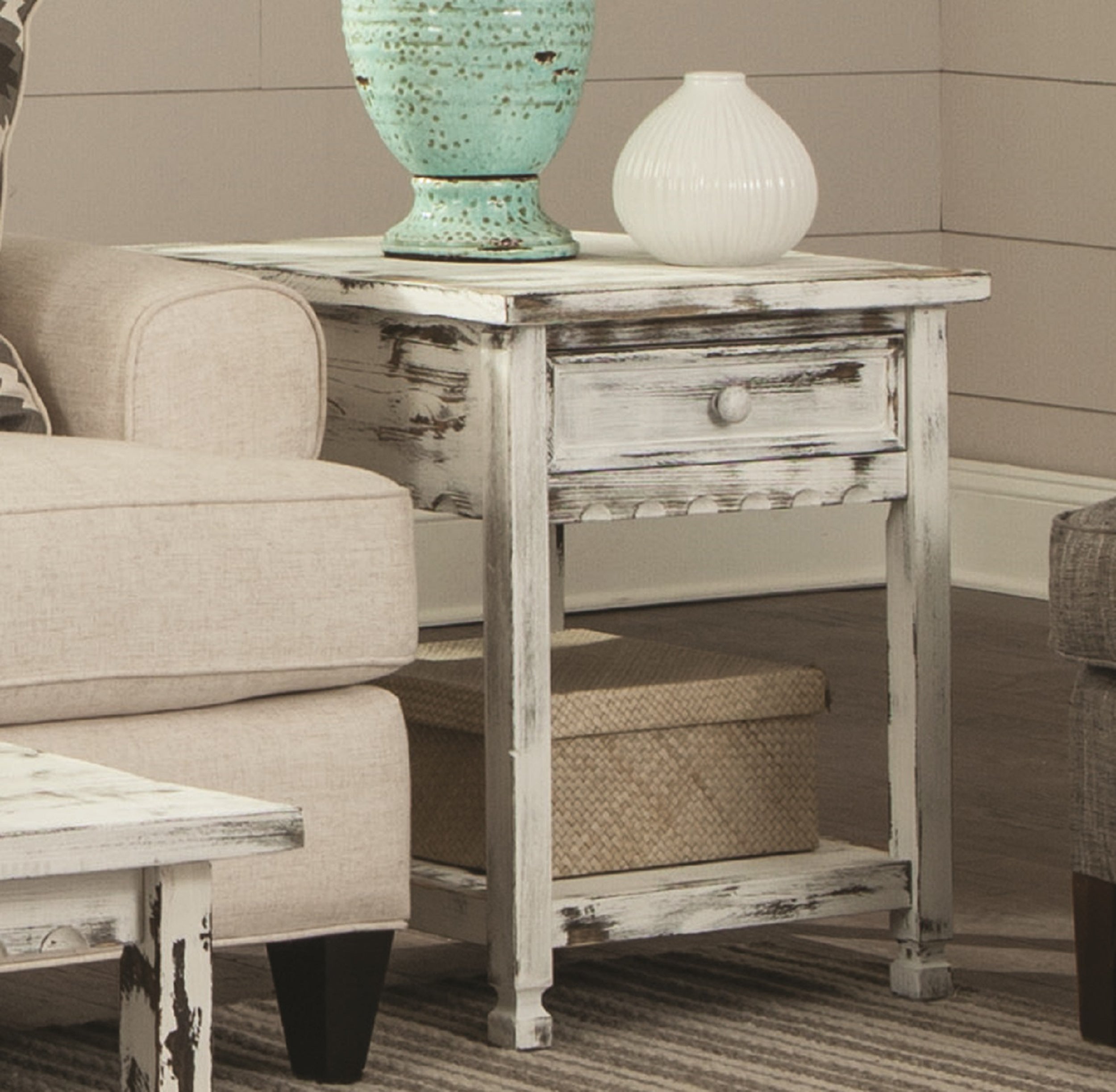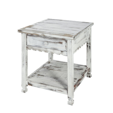 Country Cottage End Table, Rustic White Antique Finish