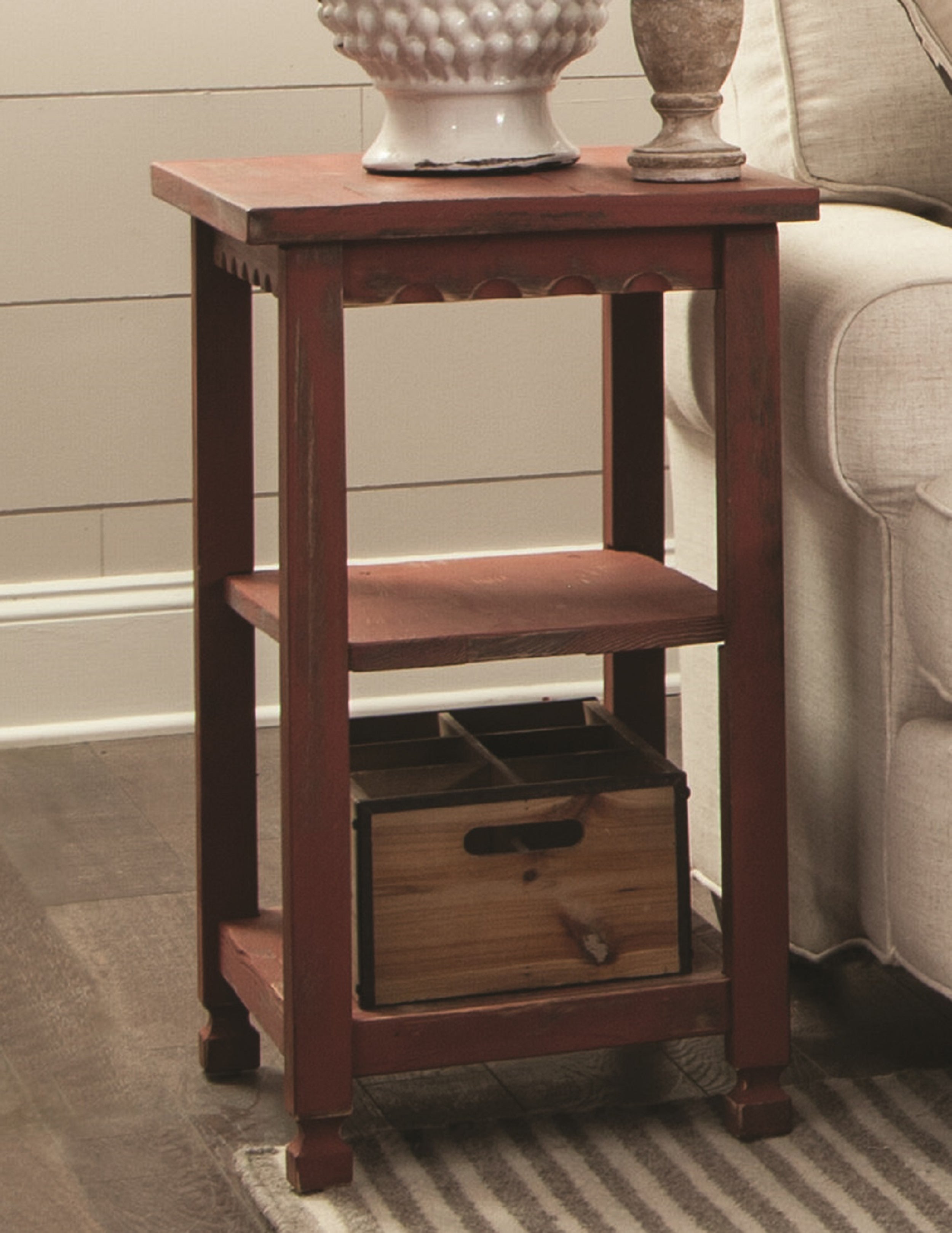 Country Cottage 2 Shelf End Table, Red Antique Finish