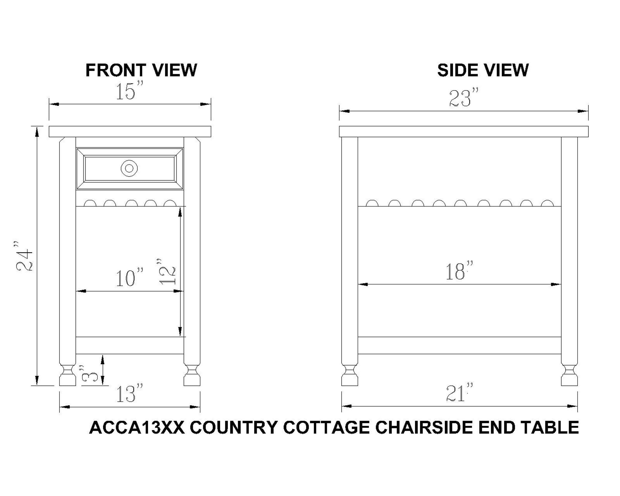 Country cottage collection will be a charming addition to your home's décor. With its detailed dental work, square legs and distressed wood construction each piece will be a unique accent in your living space. The multiple color options will blend into any space.
