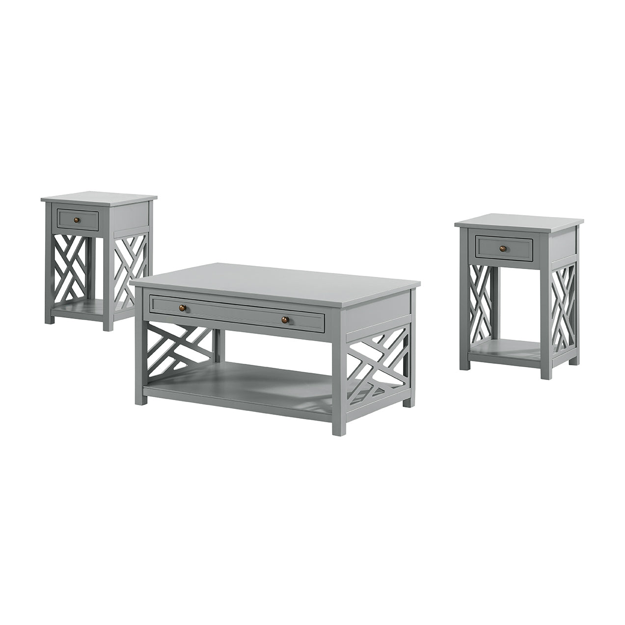 • [A STYLISH SET] Bring your home a unique and stylish aesthetic with the Coventry 36" Coffee Table and Two End Tables with Drawer! This set of 3 pieces offers an airy open-detailing on the sides, allowing for traditional to modern approaches