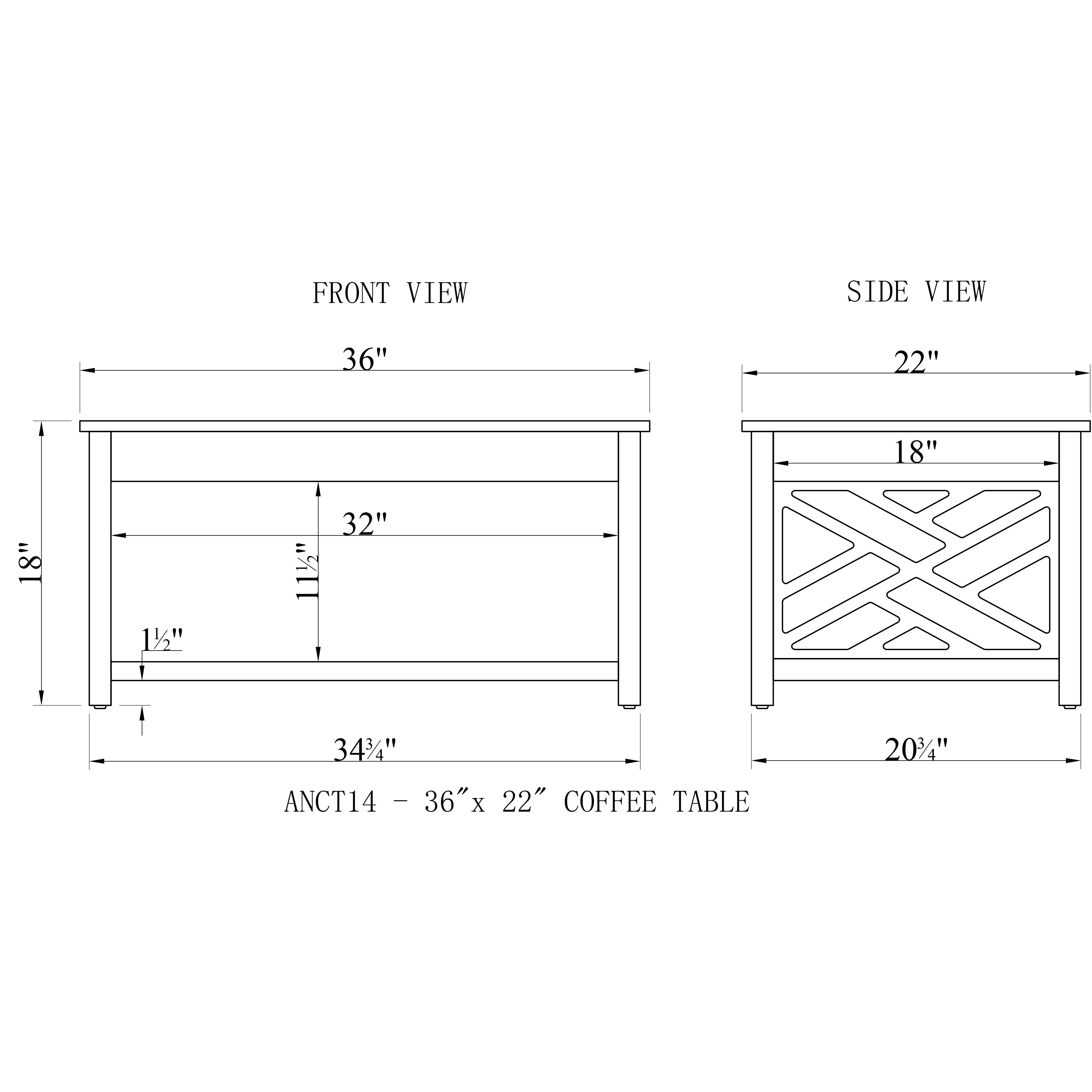 - [COFFEE TABLE DIMENSIONS] Highlight your living room decor with the coffee table measuring: 36"W x 22"D and its shelf measuring: 32"W x 18"D x 9 1/2"H
